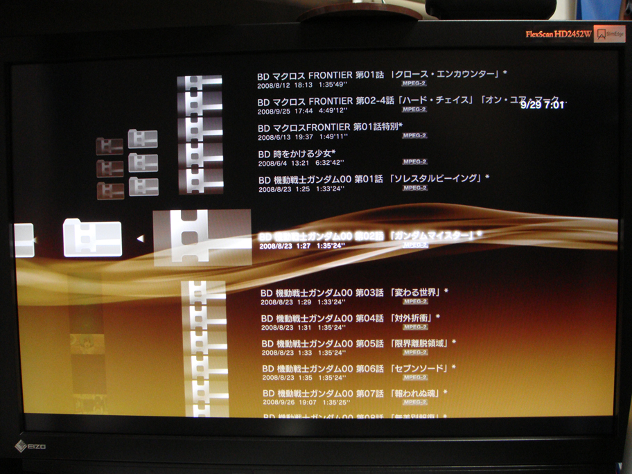 ブルーレイディーガで作成したBD-REメディアがPS3で再生できるのは当然として、PCでフォーマットしたBD-REメディアにVIDEOフォルダを作成して、その中に放り込んだファイル………例えば”機動戦士ガンダム00 第06話 「セブンソード」.m2ts”みたいな奴でも平然と再生出来ちゃうんですねぇ。偉いぞPS3。