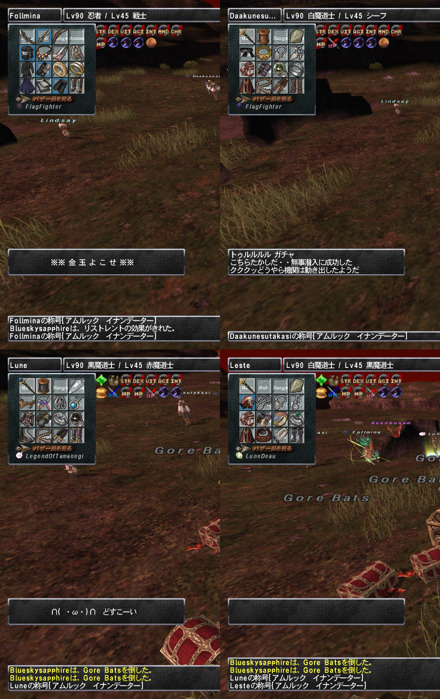 投稿日: 2011/07/19/ 09:30:16このクソ共なんとかなりませんかhhhh 10年FFやってっけど、本気で人を殺したくなったのはこれが初めてかも。 なんなの?このカスっちぃ集団は………ありえんorz ラグ鯖はゴミ貯めサーバーか。装備もスキルもクソな連中で、まー死ぬわ死ぬわ。 しかし凄いよなこいつら。 下位3カ所とボスを平行して進めていて、ブリなんて3匹沸かせでエンドレスw ねーわwww 効率は佳さそうだけどな。 マンパワー最強だよなぁ。カスでもこんだけ集まると脅威だわw しかしなー、余裕でフルアラくらいの人数でやってっけど、全員分揃える盟約だとするととてもじゃないけど加わりたくはないなw 5人ですら地獄だったというのに………w “このクソ共なんとかなりませんかhhhh” の続きを読む