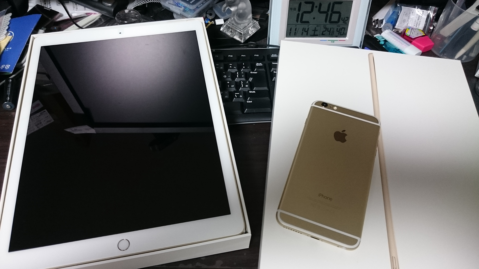 左から、Pro、Air2、Mini、6S Plusと。iPad Airですらかなりの大きさと思っていたのに、それがMini程度ないしそれ以下のサイズに見える不思議w