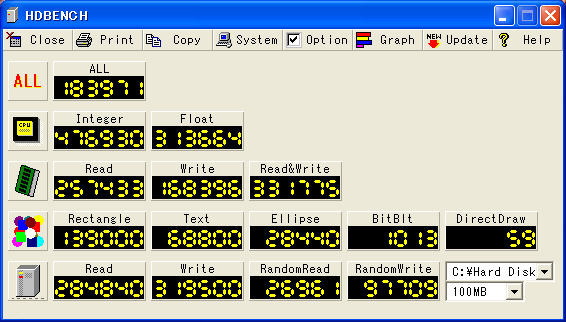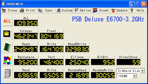 4800+のHDDスコアがちょっぴり佳いのはWD360GD(36.7GB 10000rpm)x2でRAID0だからです。
