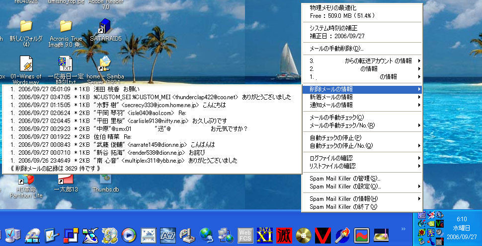 Spam Mail Killerはやっぱ便利だ。常駐してあるWindowsサーバーで勝手に走らせておけば知らない間に全部自動カットしてくれてます。このソフトはまじでお薦め:)
