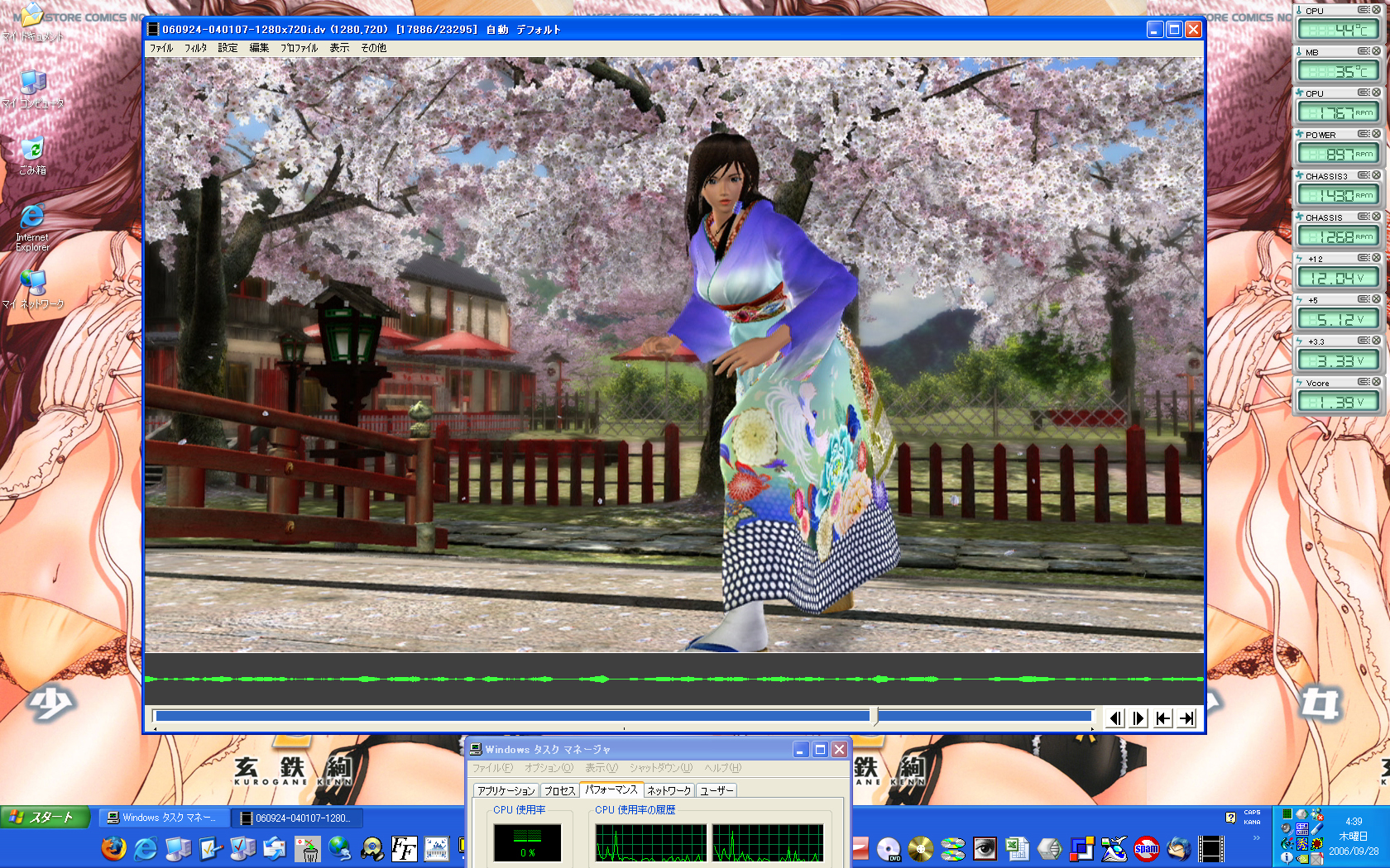 ちなみにPV3付属の再生ツールもやってみました。結果はP4-3.57GHzでは100%の等速再生が精一杯、既にCPU負荷80%いっちゃってますw 125%で100%ぎりぎり。遅いマシンは南無南無ですな。