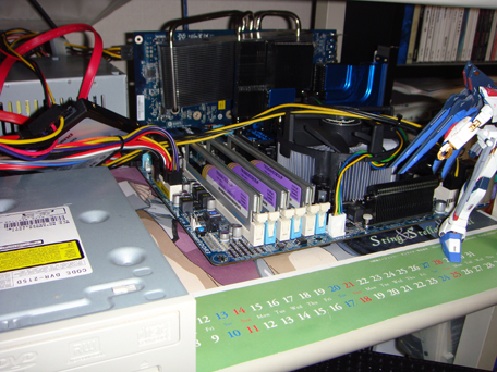 愛がないのでひざの上でCPUやらメモリやらを差して、そのまま野ざらしで電源オーン♪(>_< )ノw 便利だぜっw
