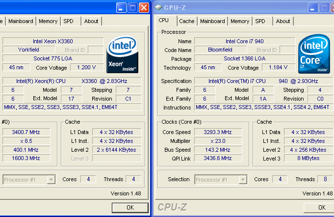 左がCore2(X3360)で、右がCore i7(965)