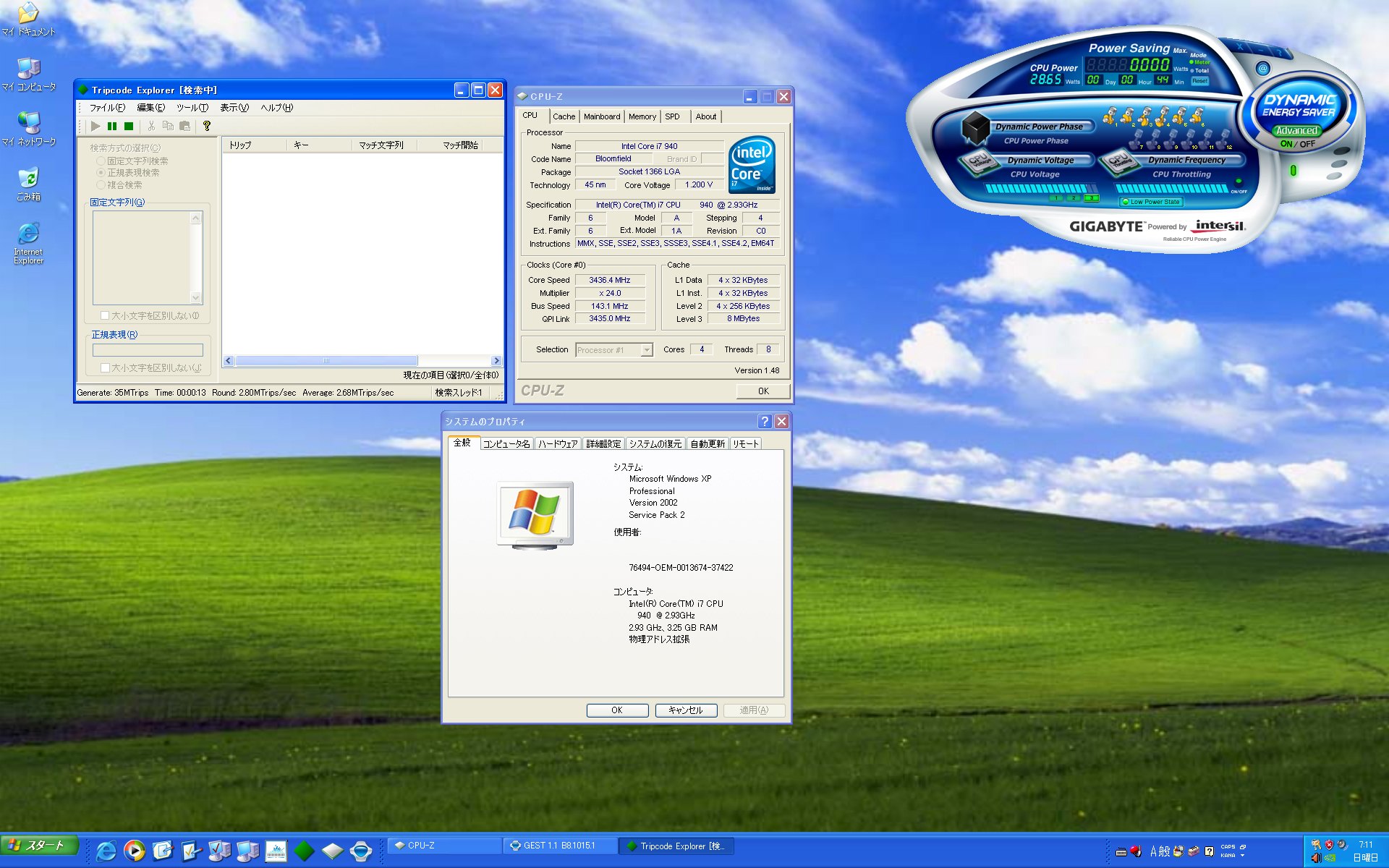 Core i7は動作コア数が少ないほど倍率が自動で上がっていくとからしいんで、試しに1コアだけシバいてみたら倍率x24に。