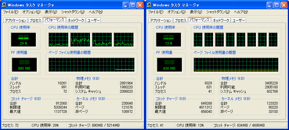 OSはどちらもWindowsXP SP2 x86