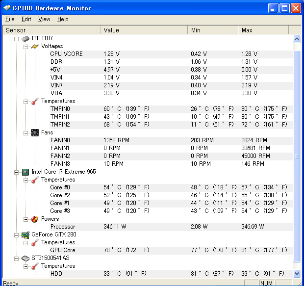 Core i7-965のOCにGTX280でもこんな数値ですか(^^;;;;