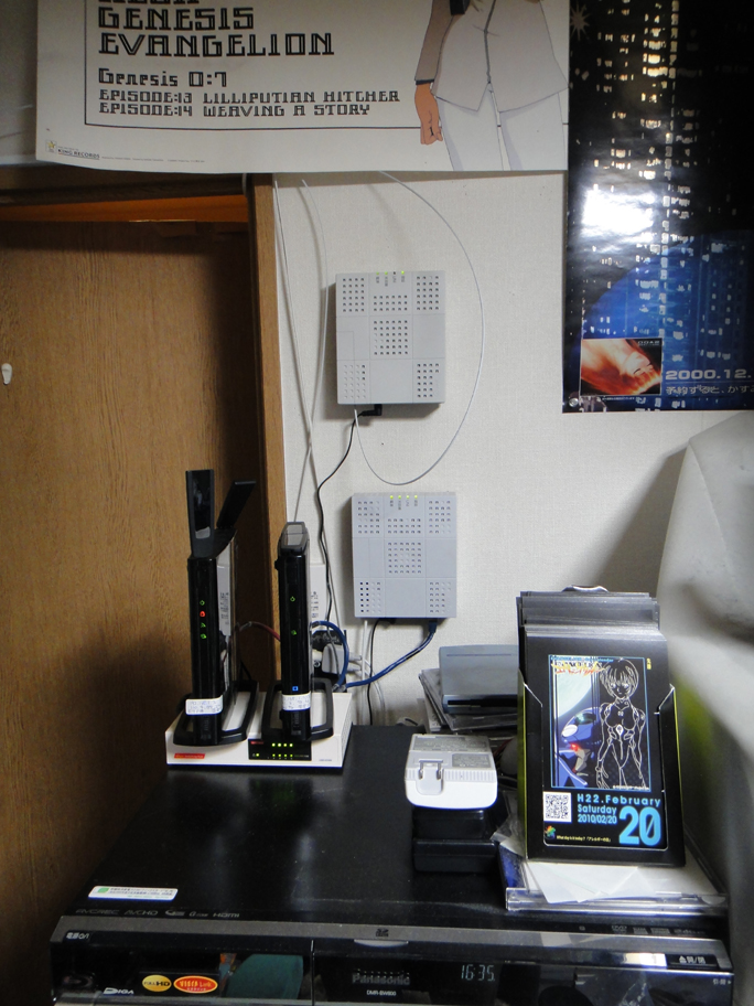 メインマシンへ、更に2メートルのカテゴリ7ケーブルでハブから直結。いつでもダイヤルアップ?可能な状態に。