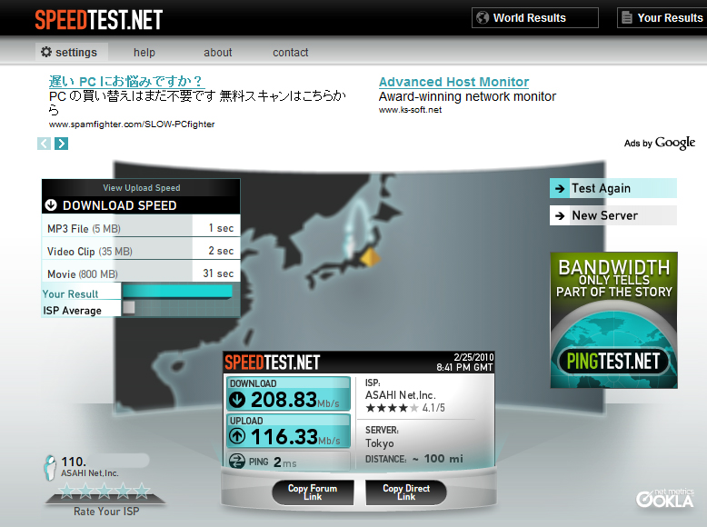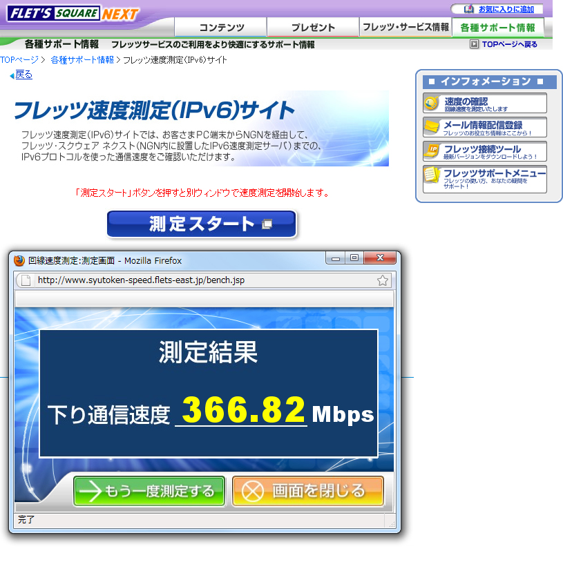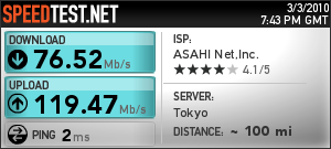 なんだ、ちゃんと回線速度の上限一杯までしっかり出るじゃんBフレッツネクスト。やるな(>_< )ノw