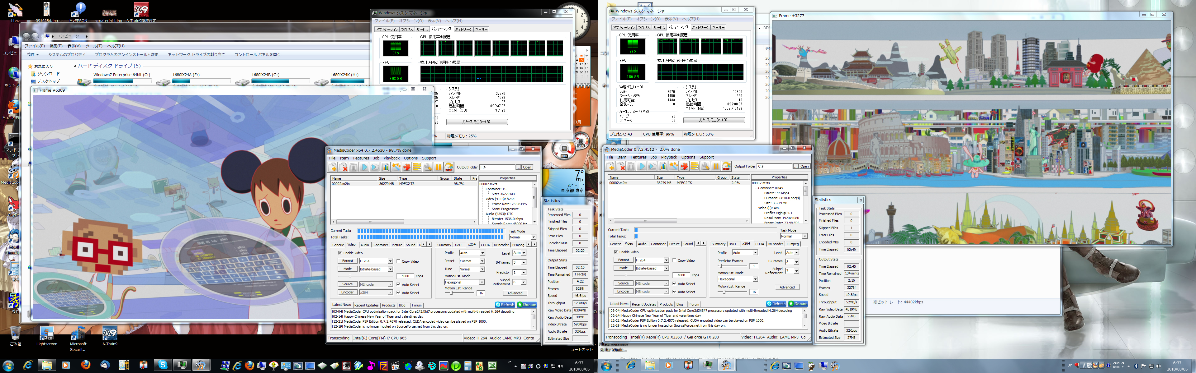 違いは、送り側がCore i7-965(3.6GHz)で、受け側がCore 2 Quad6600(2.4GHz定格)って事くらい。
