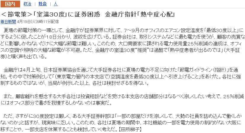 役人がキチガイ過ぎてヤバい。30℃設定とか、死ぬわ(苦笑)