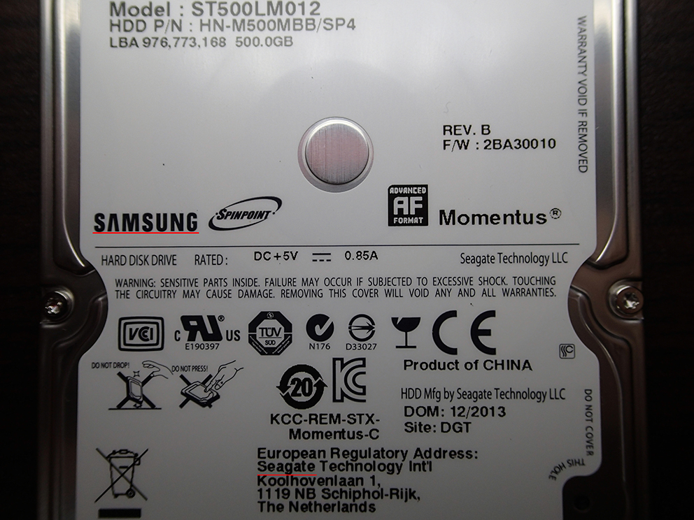 さて、サムチョンのクソHDDの野郎をどうしてくれようかな?って眺めていたら、なんと小さく我らがSeagateの文字が(>_< ) なんで??w