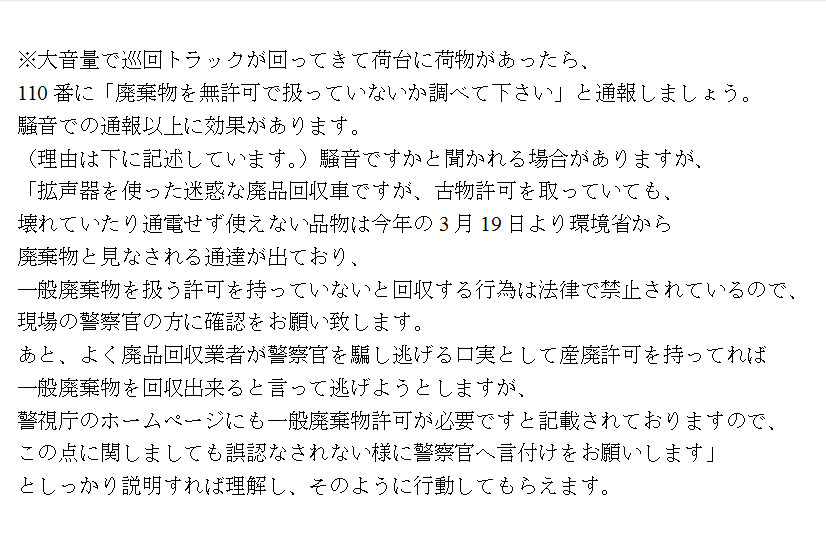 うちの路地は通り抜け不可能な袋小路だというのに、それでも頻繁に横浜やら湘南ナンバーのゴキブリ(回収業者)が回ってくる。