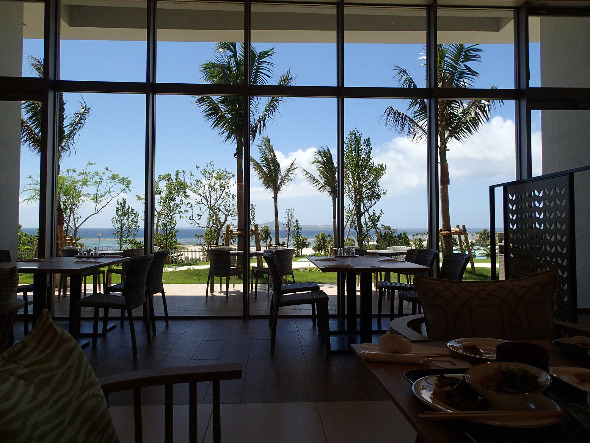 レストランとかピッカピカで真っ白で、遠くに見えるは伊江島というベストロケーション。すげー綺麗。こっちに泊まりたかったw