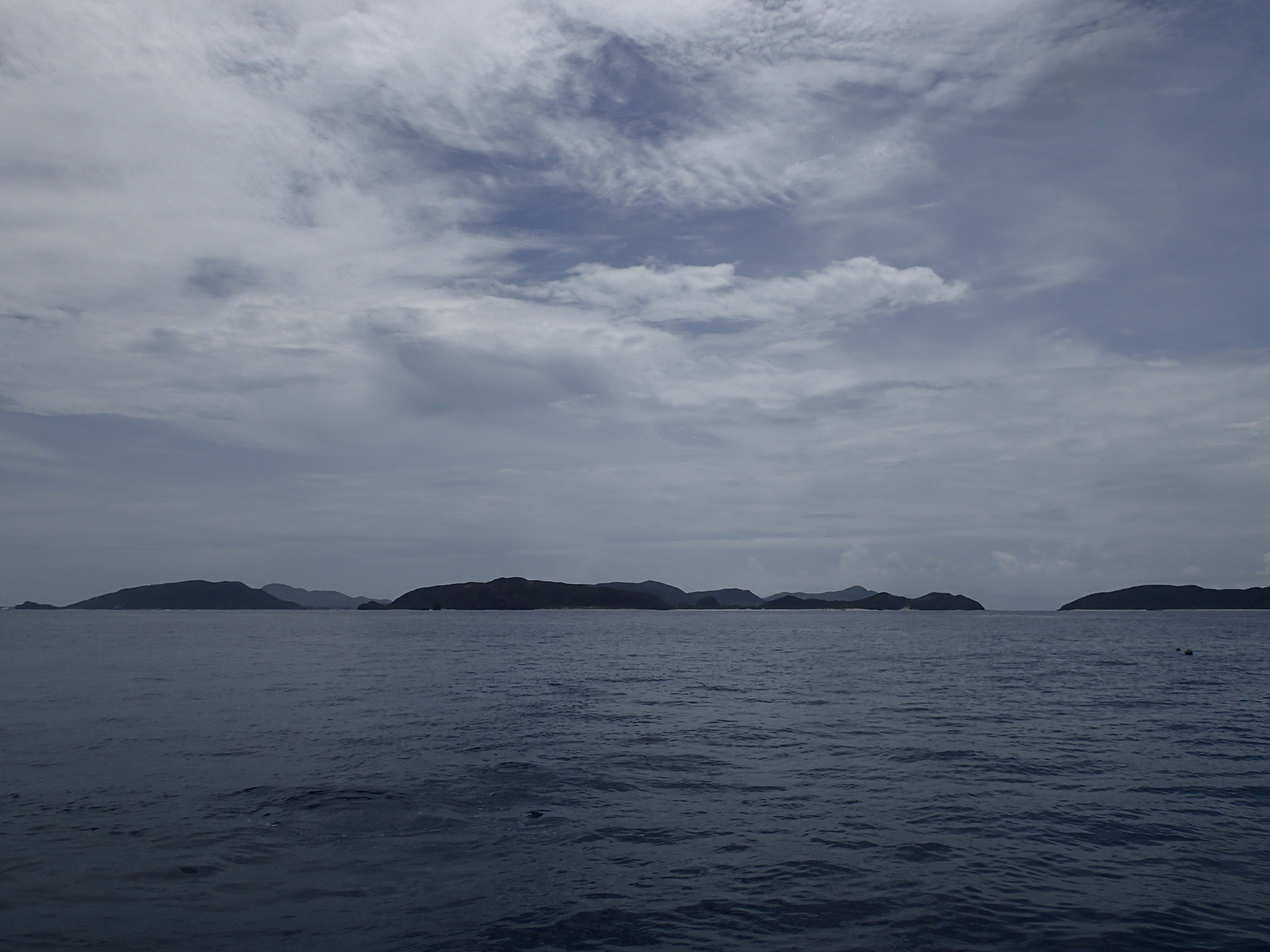 昨日の8/3にくらべると、凪(ナギ)だったそうです。うーむ、この写真ではどれがどの島なのかサッパリわからぬw
