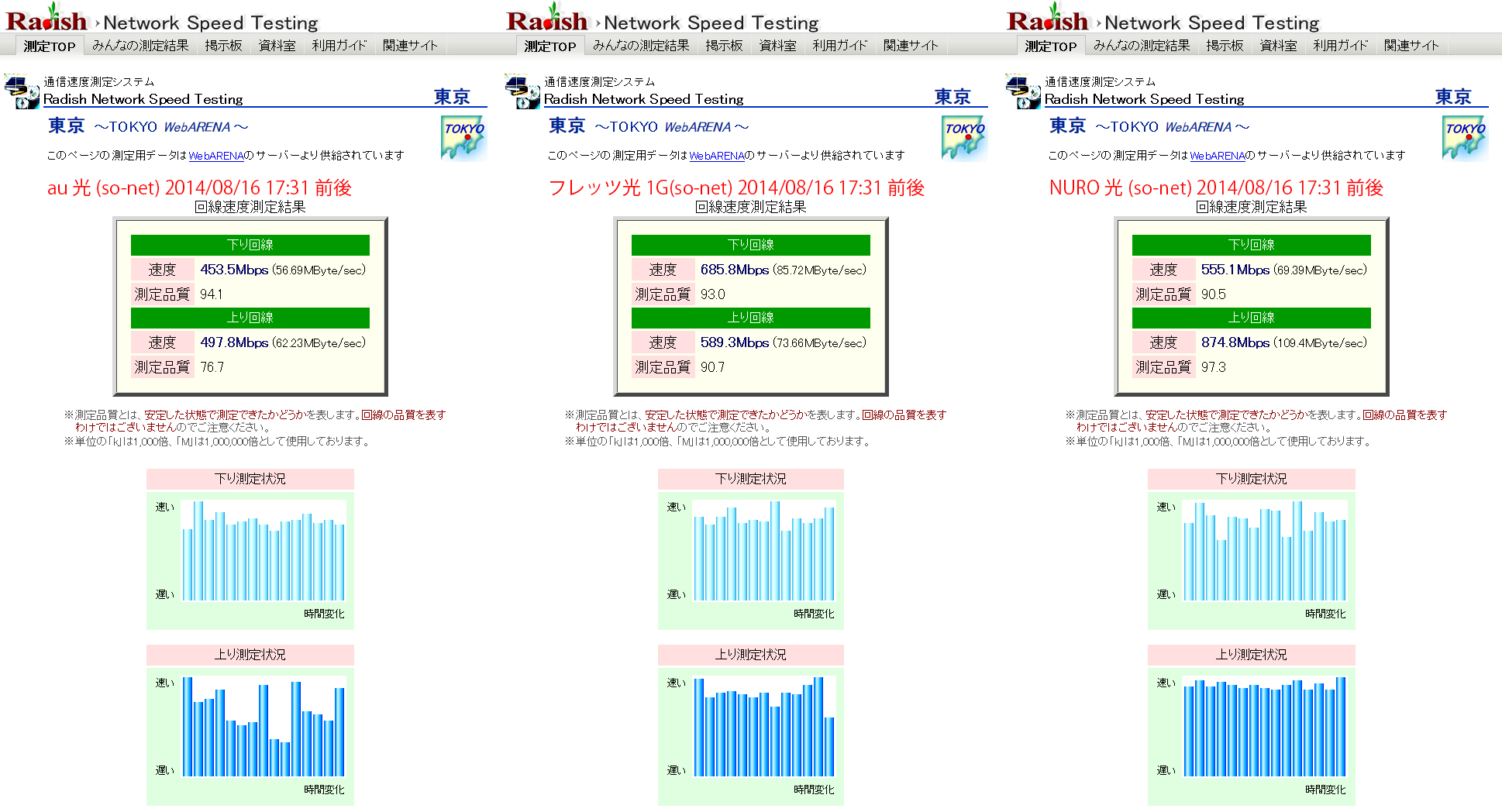 その一番ひだりのau光には元々期待してないから、だいたい想定内の結果となったんでまあいいんだけど、問題なのはフレッツ光w