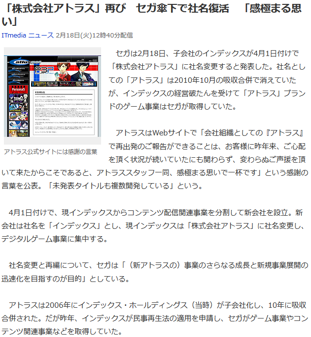 SEGAとしてのアトラスなら、資金面問題ないだろうし、やってくれると信じる(>_<);