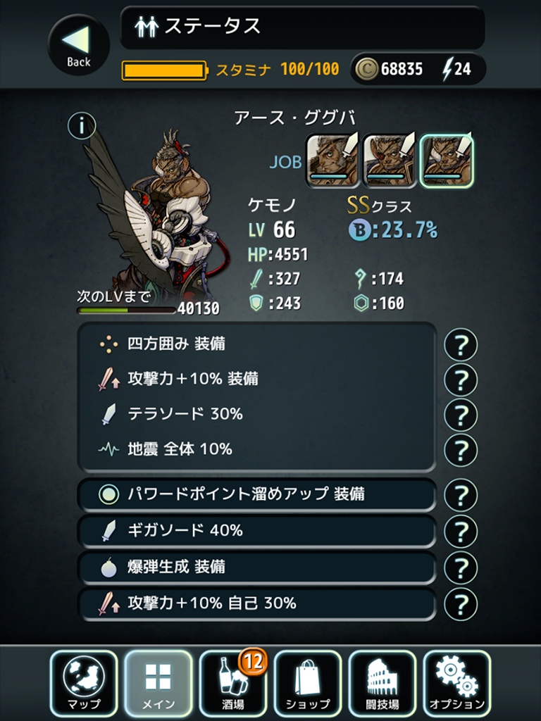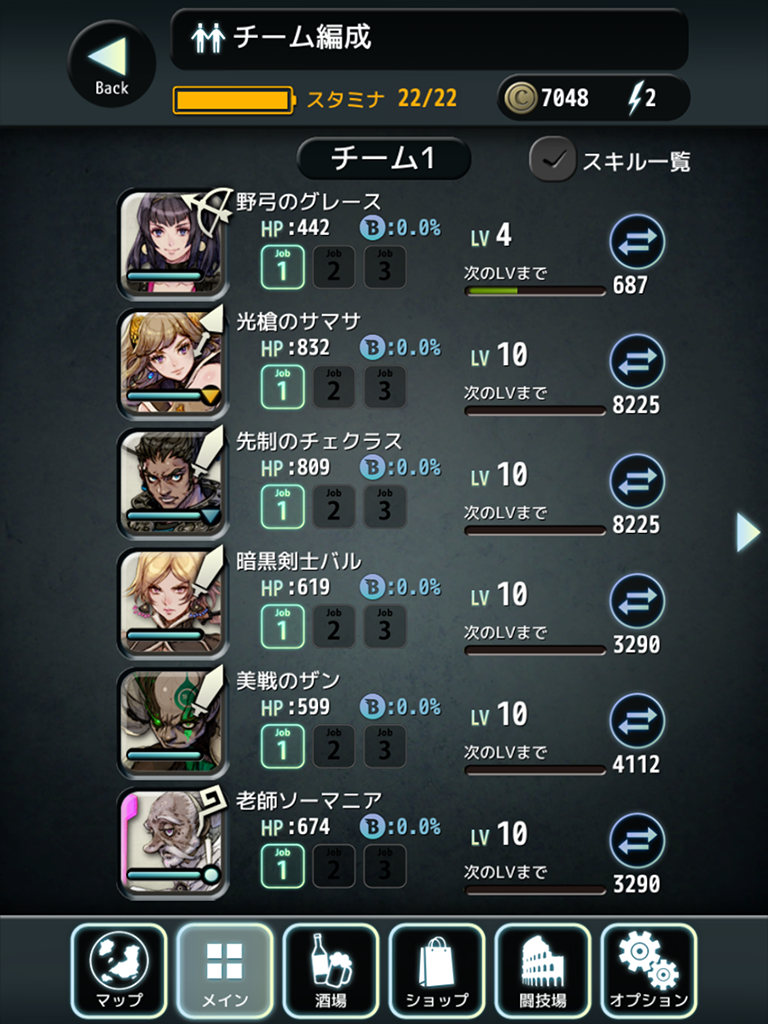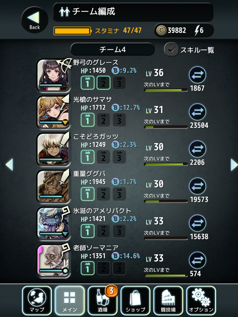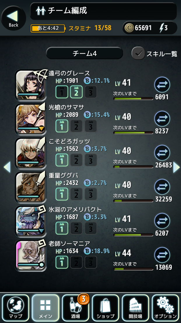 ガッツのステ異常解除で石化とか治せるし、敵との相性が悪くてもガッツ~カナの4キャラは常時固定の外せないメンツに(>_<)