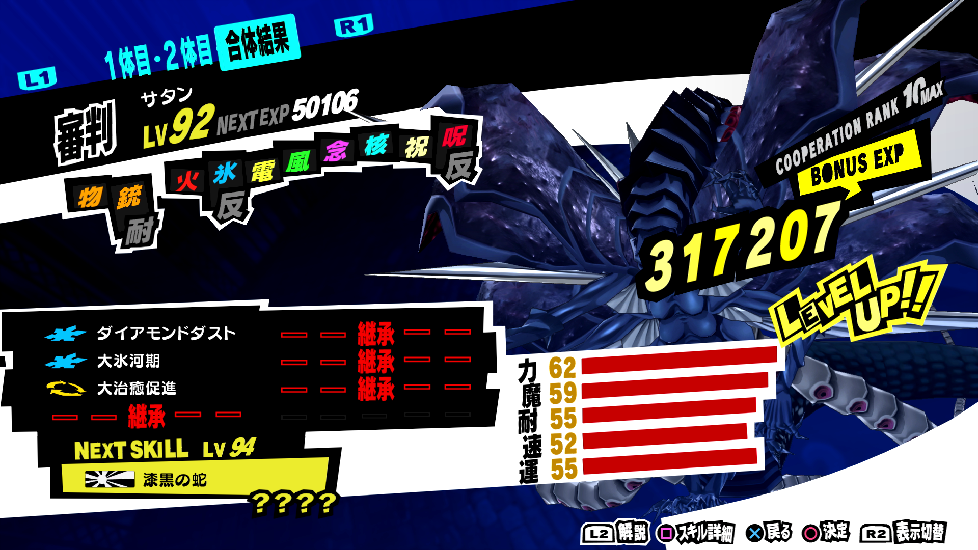 画像クリックで表示された経験値が入ってレベル上がって、スキル引き継ぎを盛大に行ったSSw