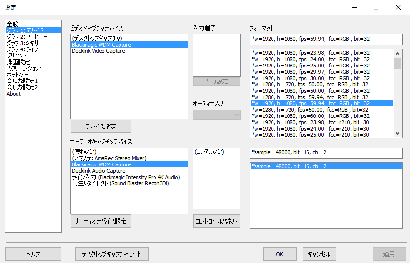 コントロールパネルのBlackmagic Desktop Video Utilityからの設定も忘れないで併せる事(>_< );