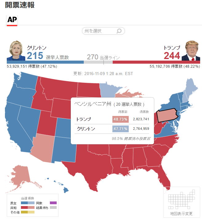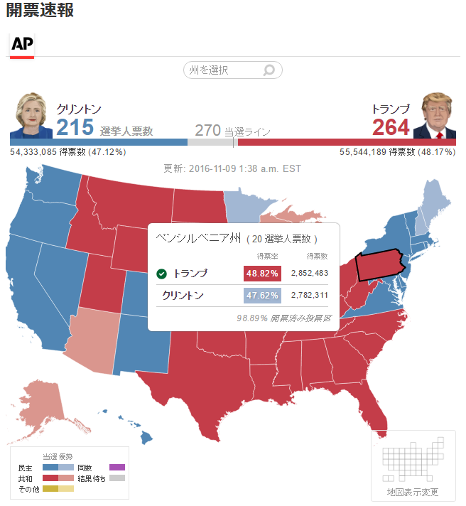 ガチでトランプ推しですが、果たして結果はどうなることやら。現時点では優勢のようだけどw