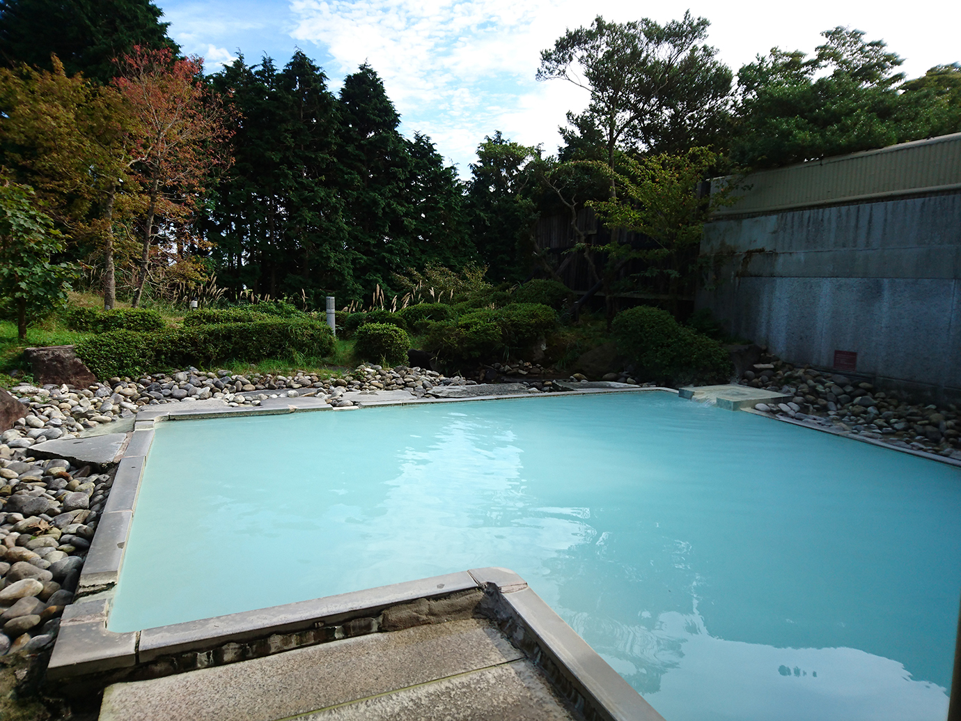 この露天風呂も超サイコーで、完全な白濁湯.........というか青みがかっちゃってる.........うーむ、綺麗w