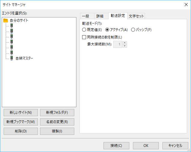 (FileZillaの)サイトマネージャーで接続先を作って、転送設定をアクティブに変更してみてください(_0_)