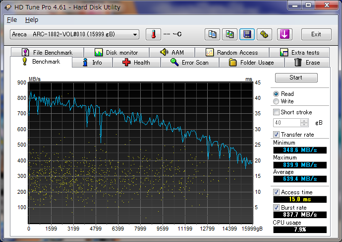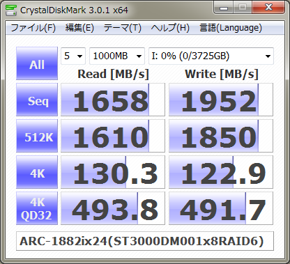 ARC-1882+ST3000DM001x8(RAID6)の、先頭領域4TBパーティションのベンチ結果ですが………クソ速ぇぇんでワラタw