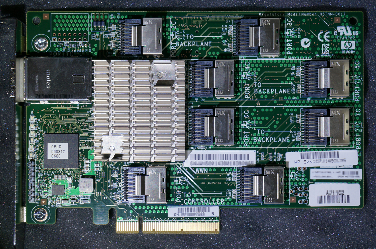 RAIDカード接続などに使うマルチレーンケーブル(内部4本) → 転送レート、片方向10Gb/s(実効速度1GB/s)