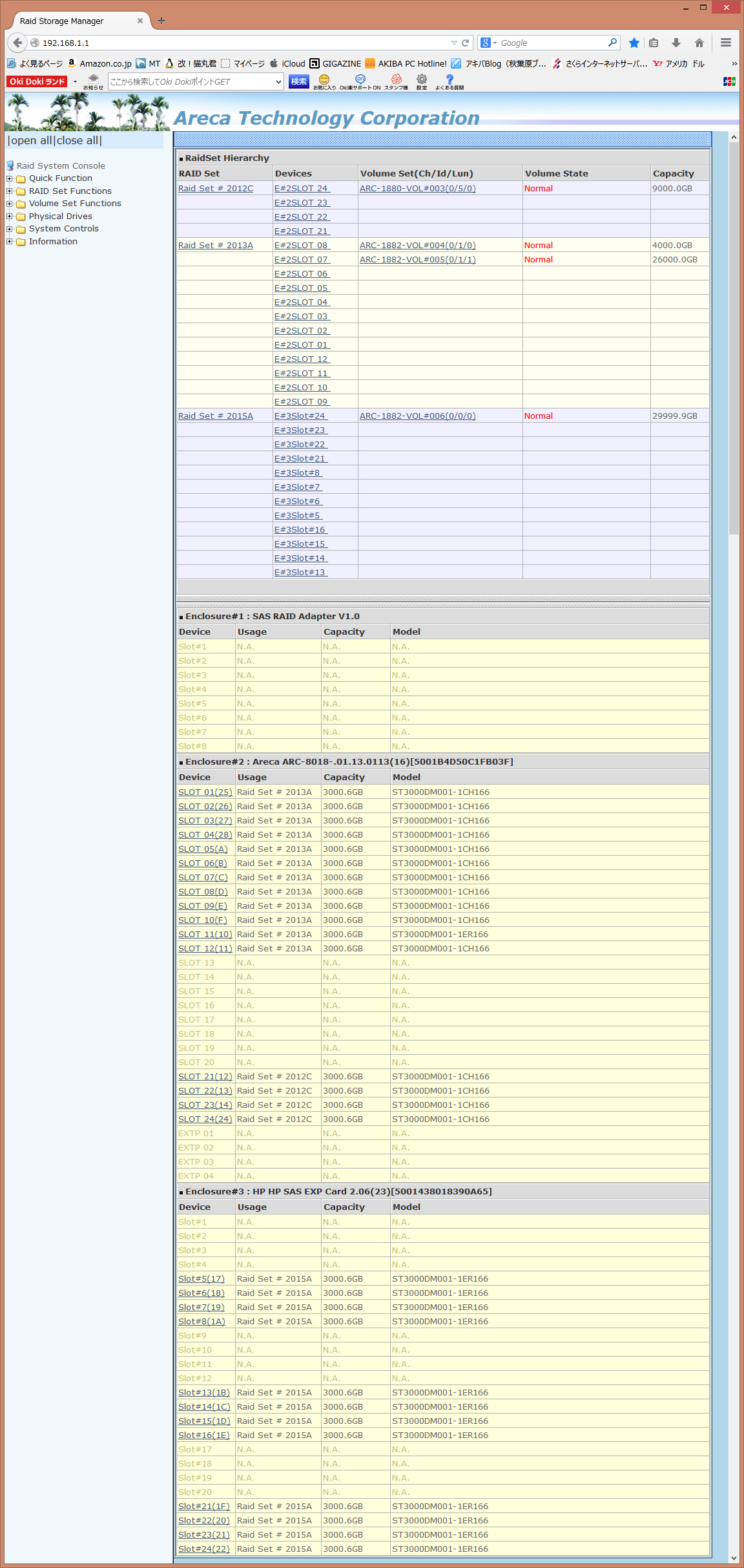 .........とか思ってたら、メインマシンに入れた、前回のST3000DM001x8アレイも1発見失ってdegradedになってる(T-T)