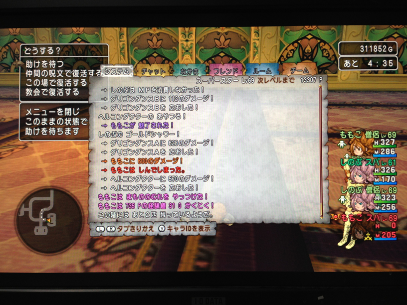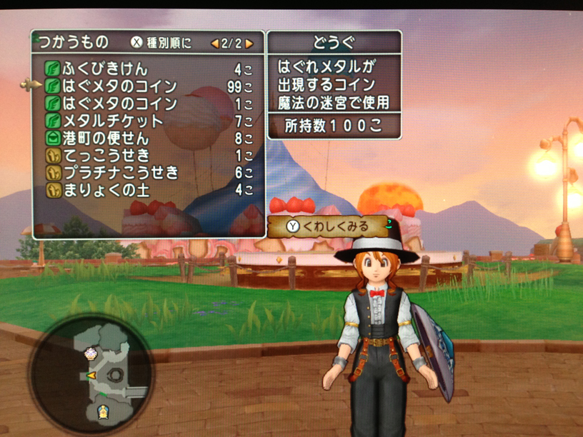 で。それに負けないくらいカネがかかる、セレブレベル上げがこれ。はぐれメタルのコイン(現在3万程度)を4枚ほどにぎりしめて、迷宮で元気玉です(>_<)ノw