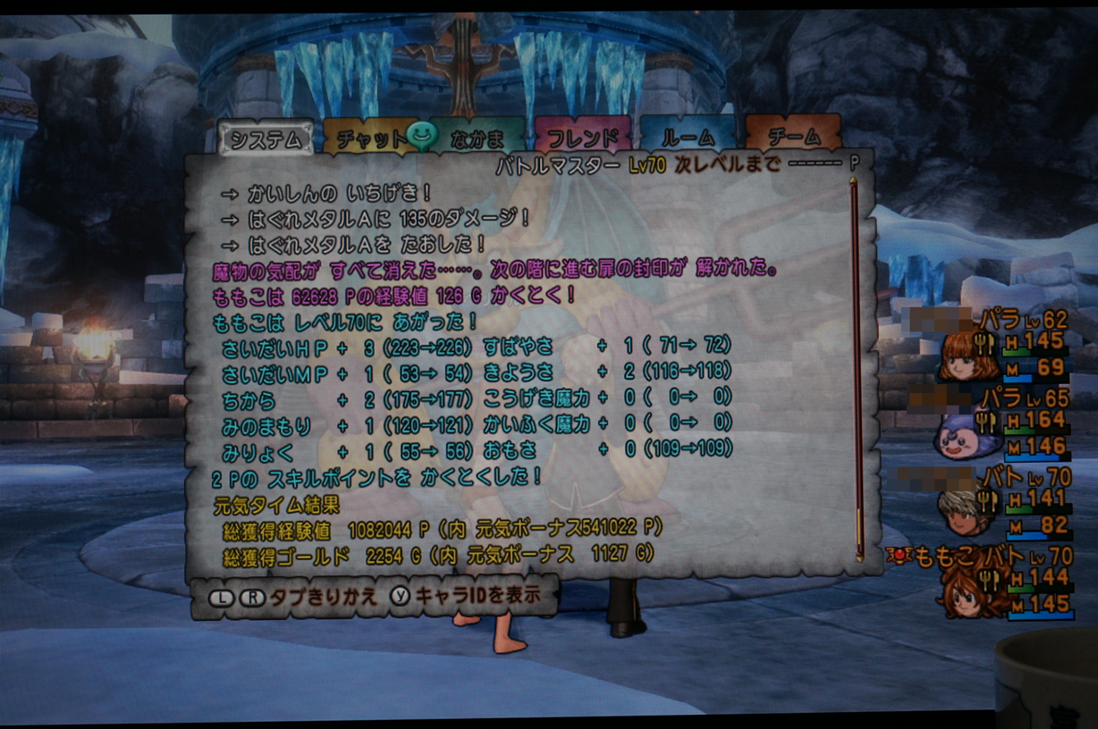 平気で4匹出てくるし、全然逃げないしでw 終わってみれば元気玉効果中にメダル4枚きっちり使い切ってこんなカンジの経験値になりもしたw