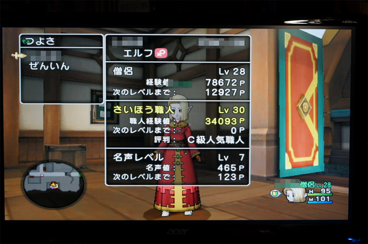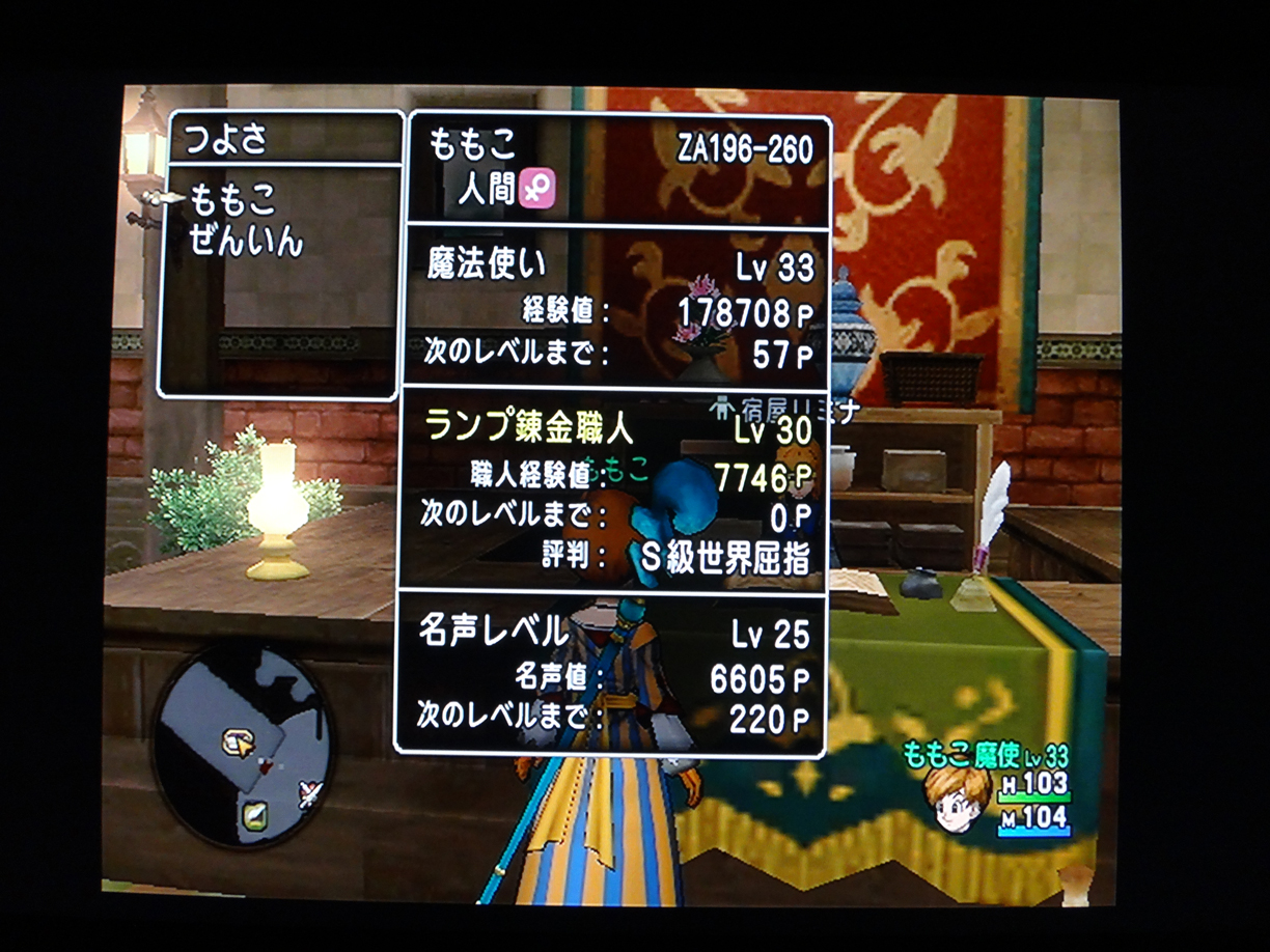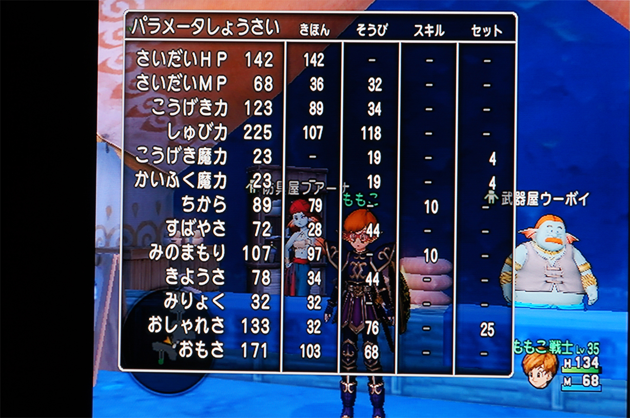 武闘家は棍棒ですでにレベル35(装備変更の都合上ここでストップw) あとは旅芸人も35にしなくちゃだわ………