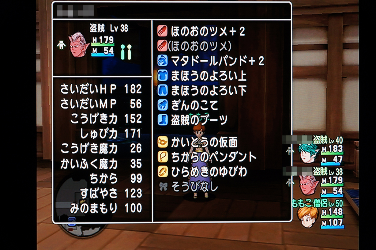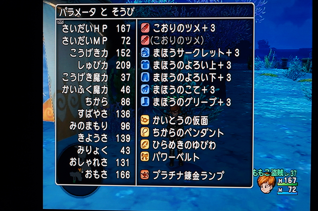 更にまほうのせいすいを節約すべく、きらめき装備までしてる人を捜したのだけど、Lv38から44まで検索するも、同じ強さの人なんざいやしない不具合orz