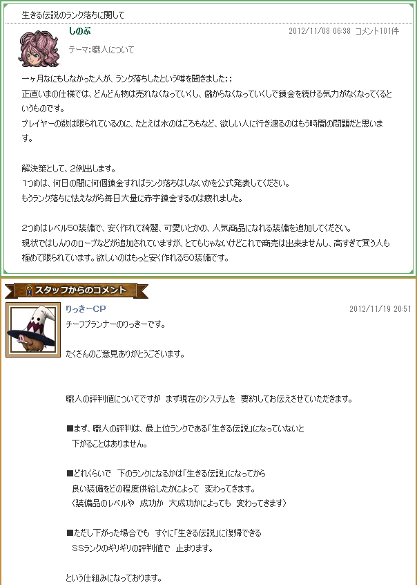 いまさっきメンテ前に今月初めてログインしたら、案の定というかランプ錬金の評判が勝手にあがってましたとさ(>_< );