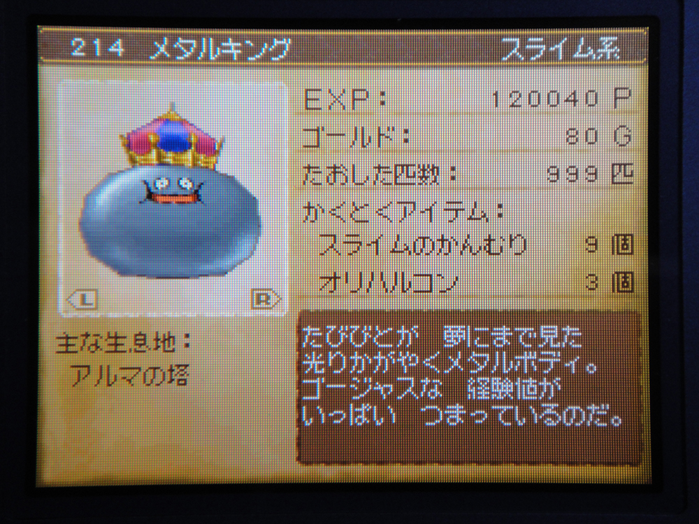 Lv42でトンブレロ倒してもちいさなメダル出るのを確認してしまったので、こいつはまだLv42でも「弱すぎる敵」では無いらしい。