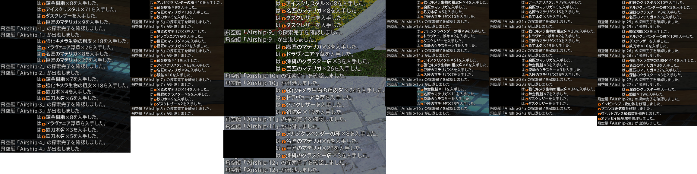 メンテはさんで飛空挺が戻ってくる場合、どこで戦利品が確定するのか疑問だったんだけど、今回戦利品の出現数がガラっと変わってくれたおかげで特定出来もした。