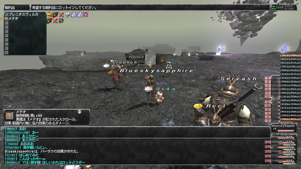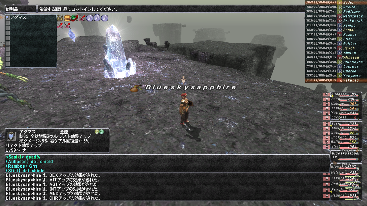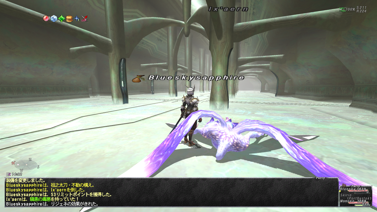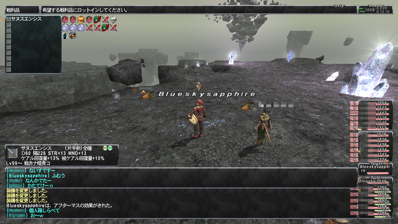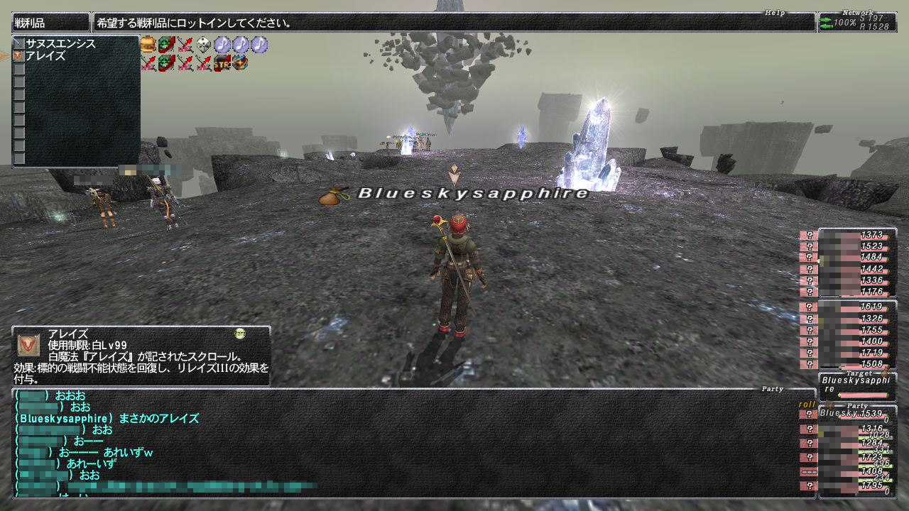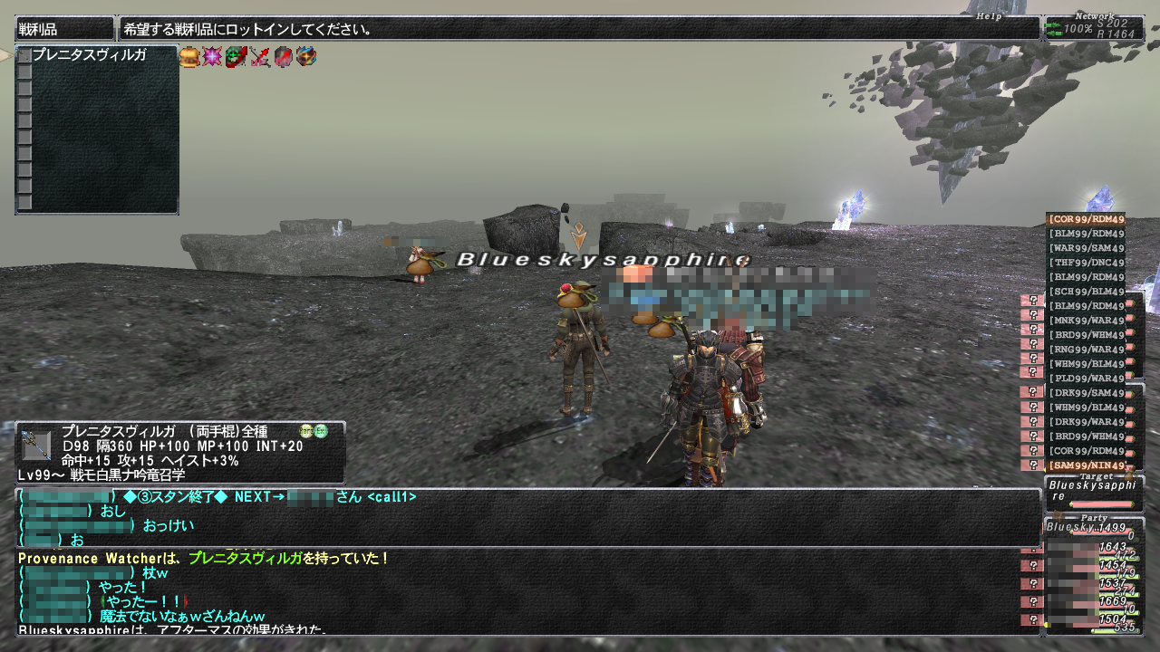 対象のNMがLv99ではどのくらいの強さなのか判らないので、メインを侍+桃子を学者(強化魔法スキルぎりぎり401w)での2アカで突撃(>_< )ノ