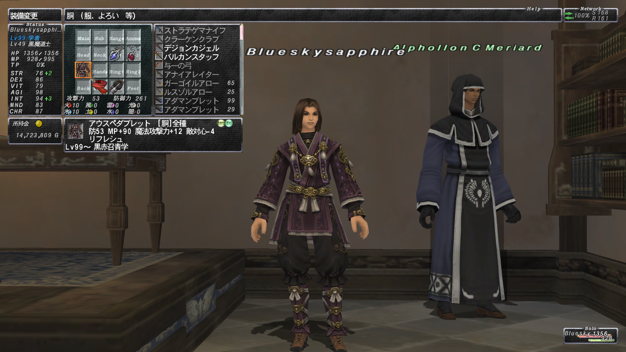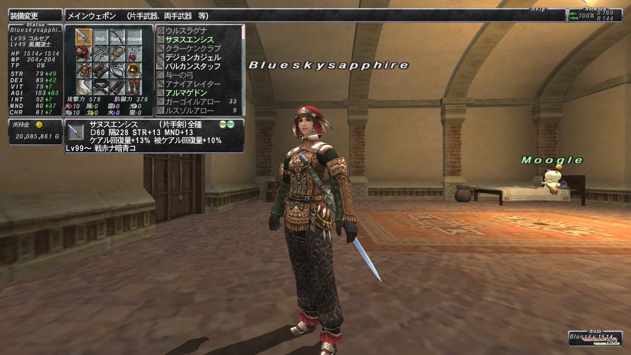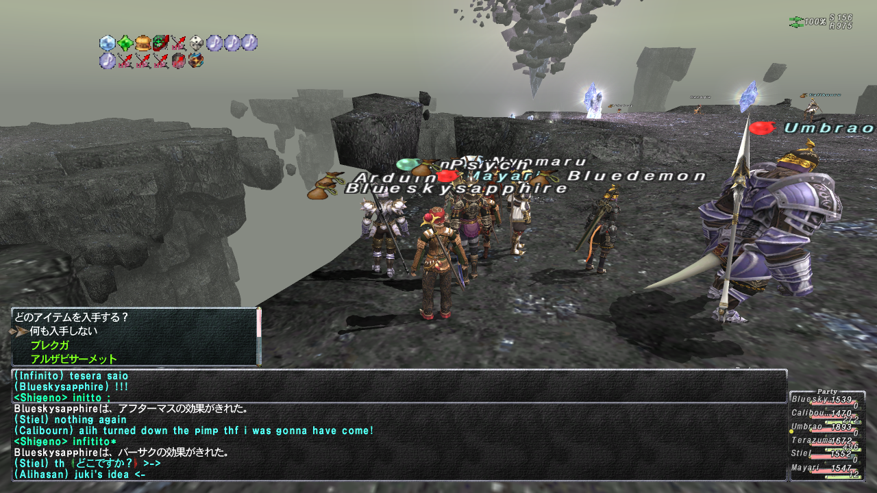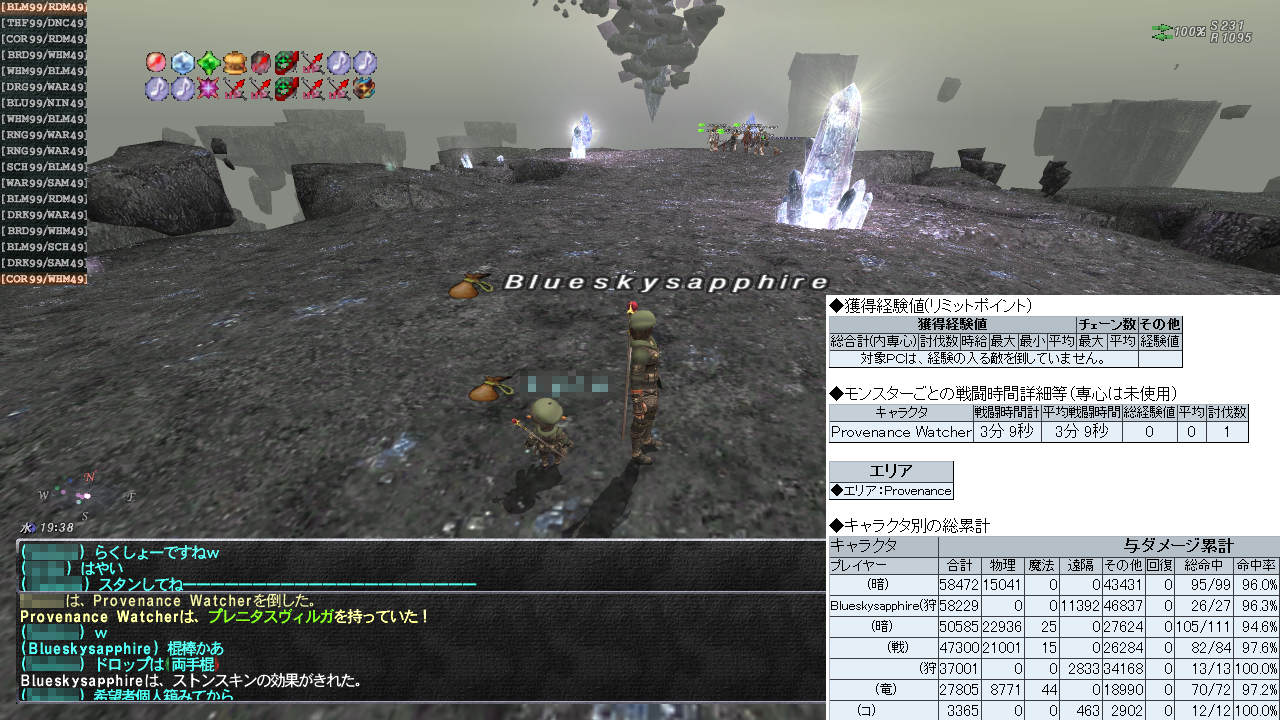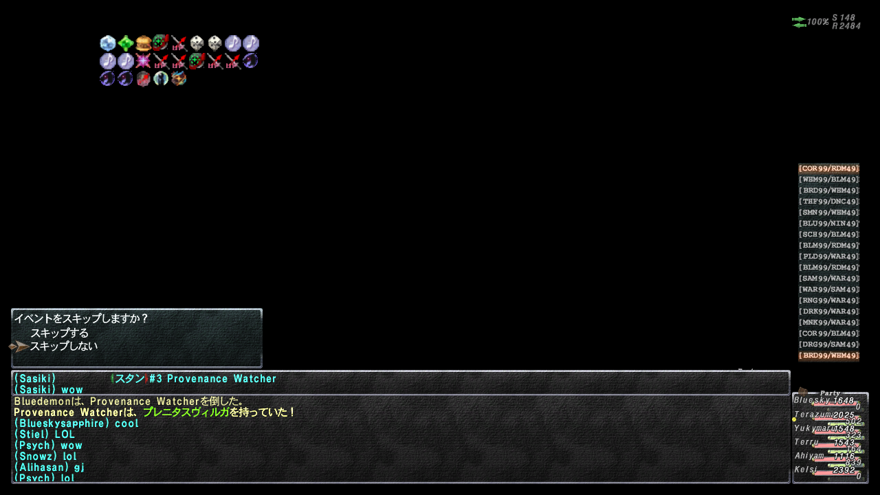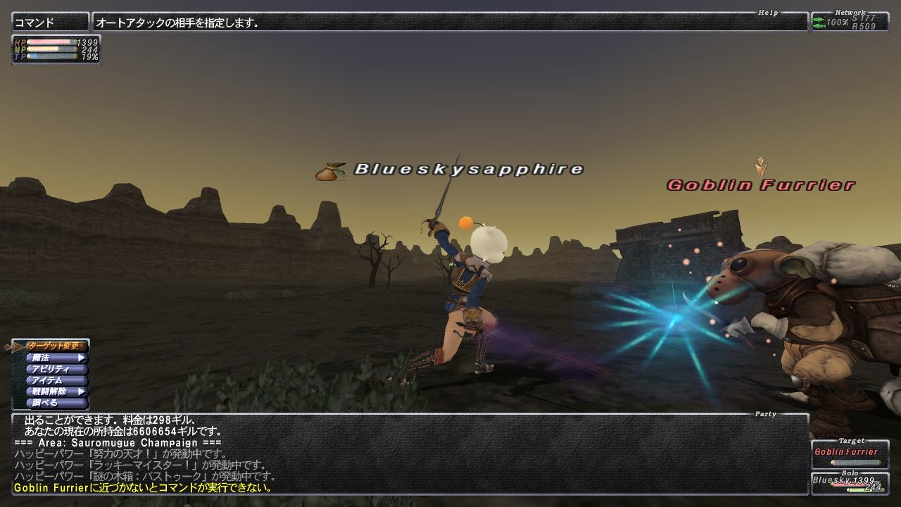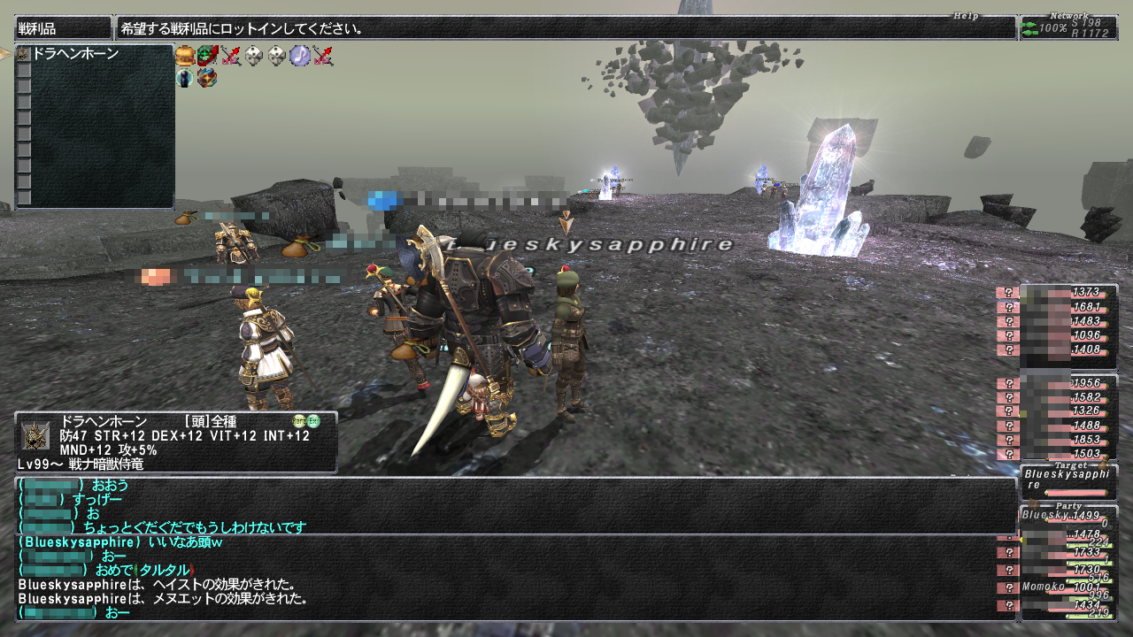 対象のNMがLv99ではどのくらいの強さなのか判らないので、メインを侍+桃子を学者(強化魔法スキルぎりぎり401w)での2アカで突撃(>_< )ノ