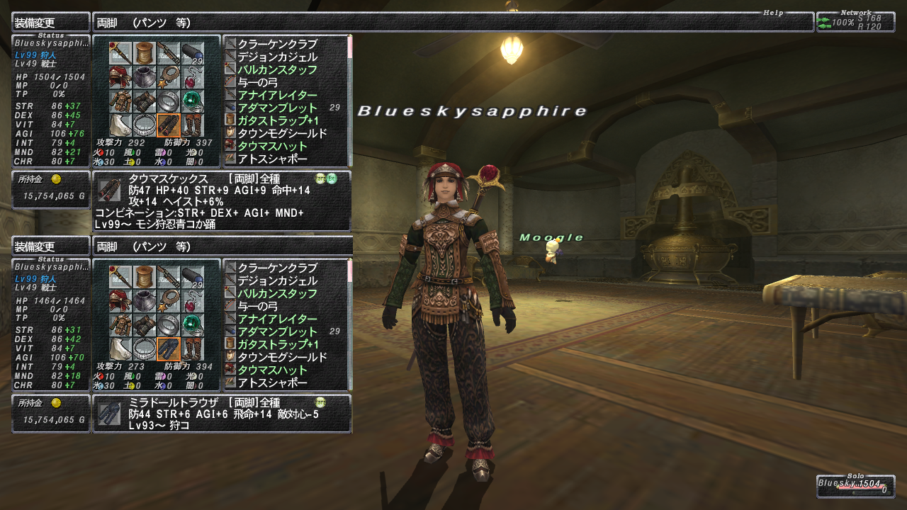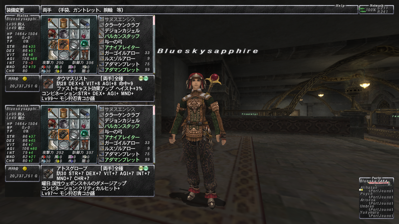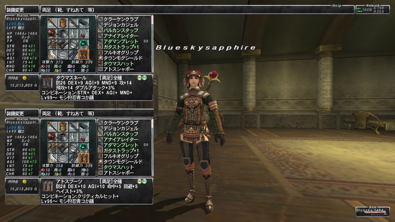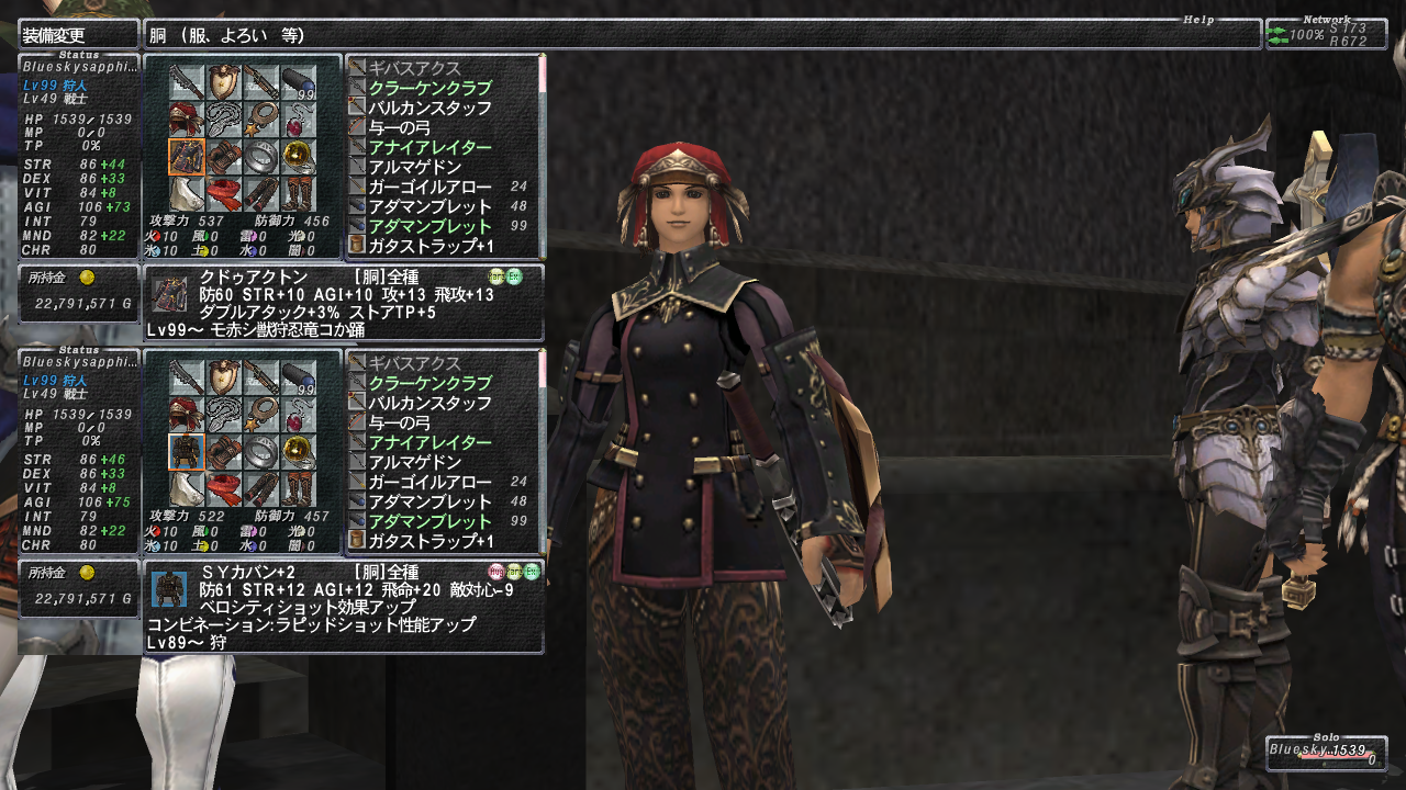 STR,DEX,AGIと、セットボーナスでいずれもいいかんじに上がってます。にやにやw