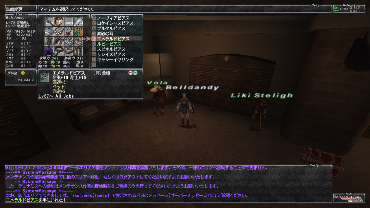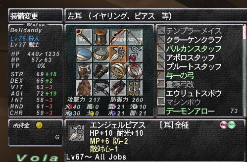 スピネルピアス モクシャ+1 ペット:命中+1 飛命+1 (>_<)はずれー (風)下弦の月