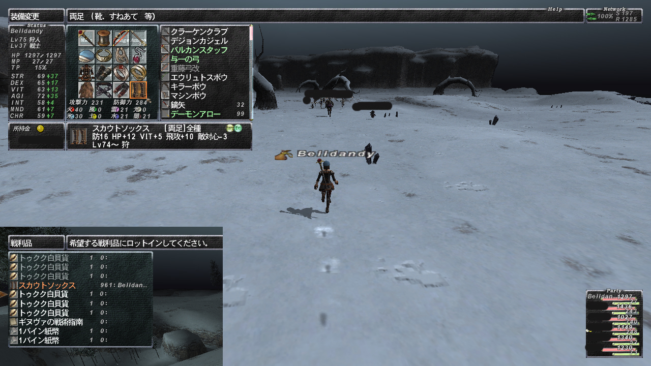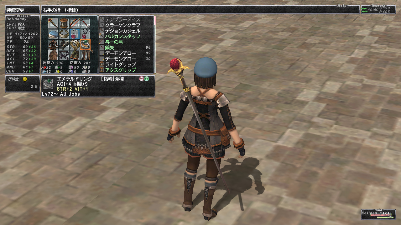 サポ侍のバルカンスタッフ&アクスグリップでSTR110のAGI104まで上げたキャラでTP100即撃ちした結果