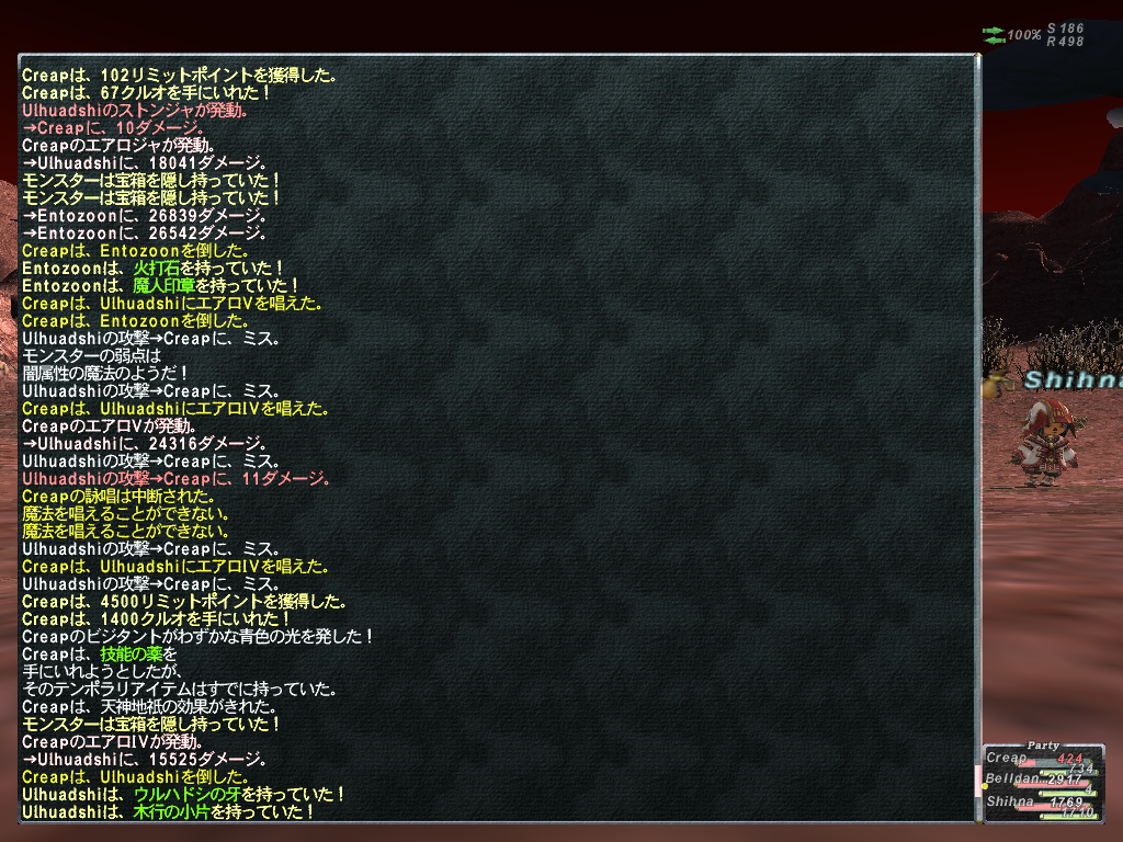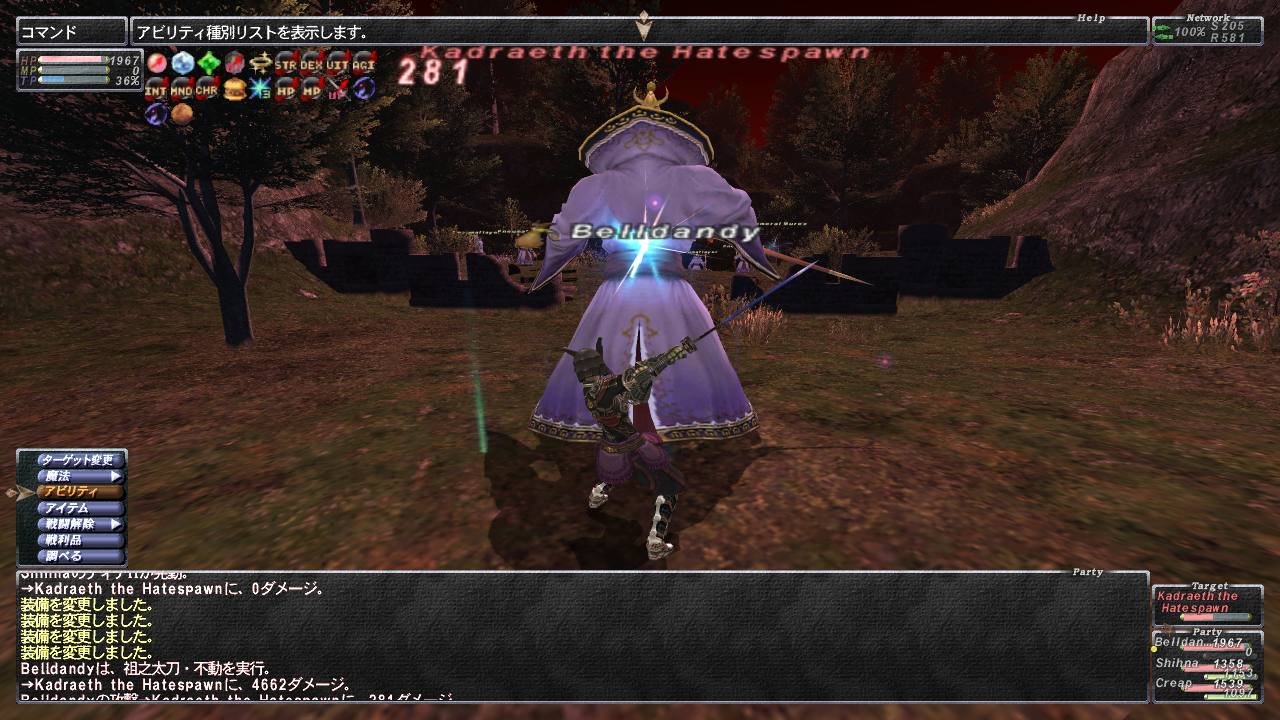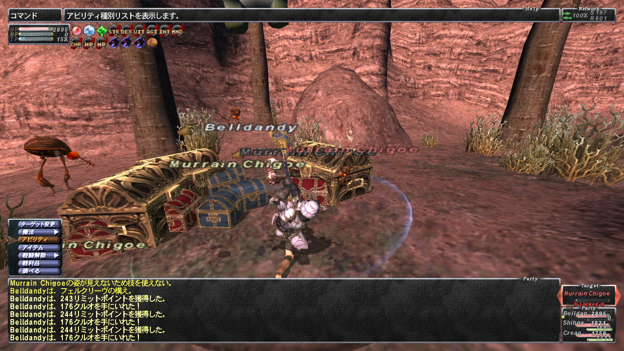 まぁ頑張ったんですがここら辺がわたしの限界ダメでしょかね。 ブンカールのイカNMに4,662ダメ、蜘蛛ザコに5,891ダメでした(>_< )