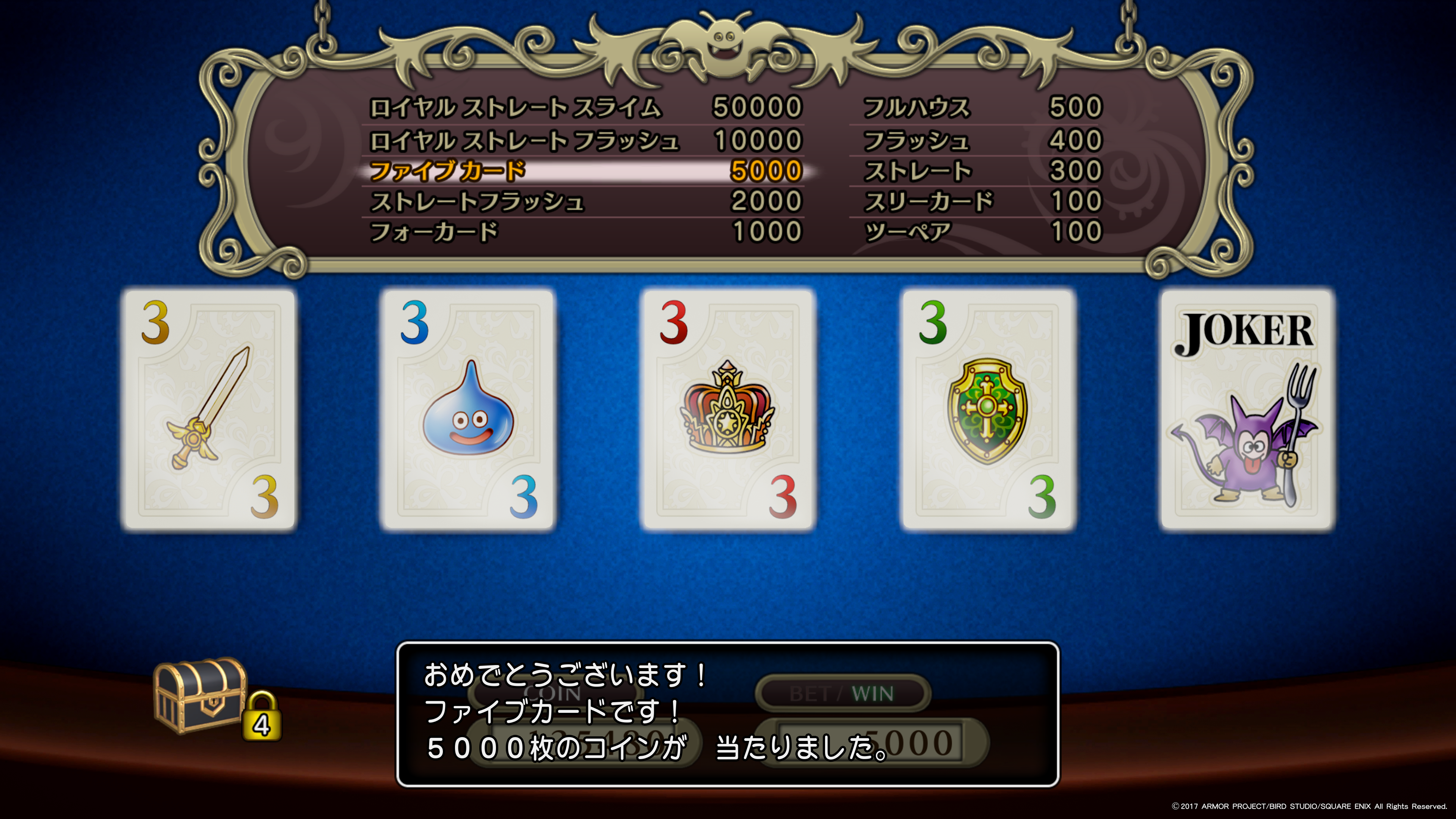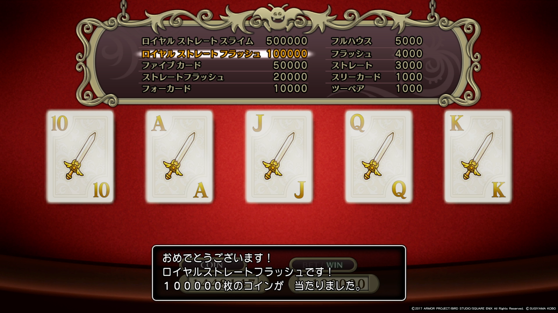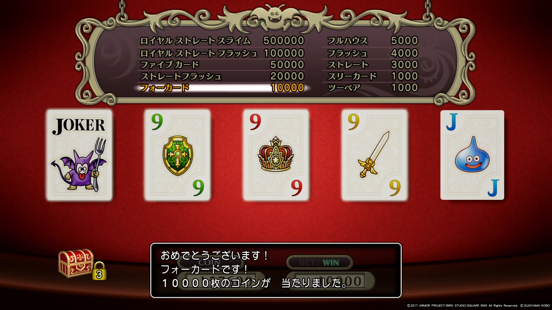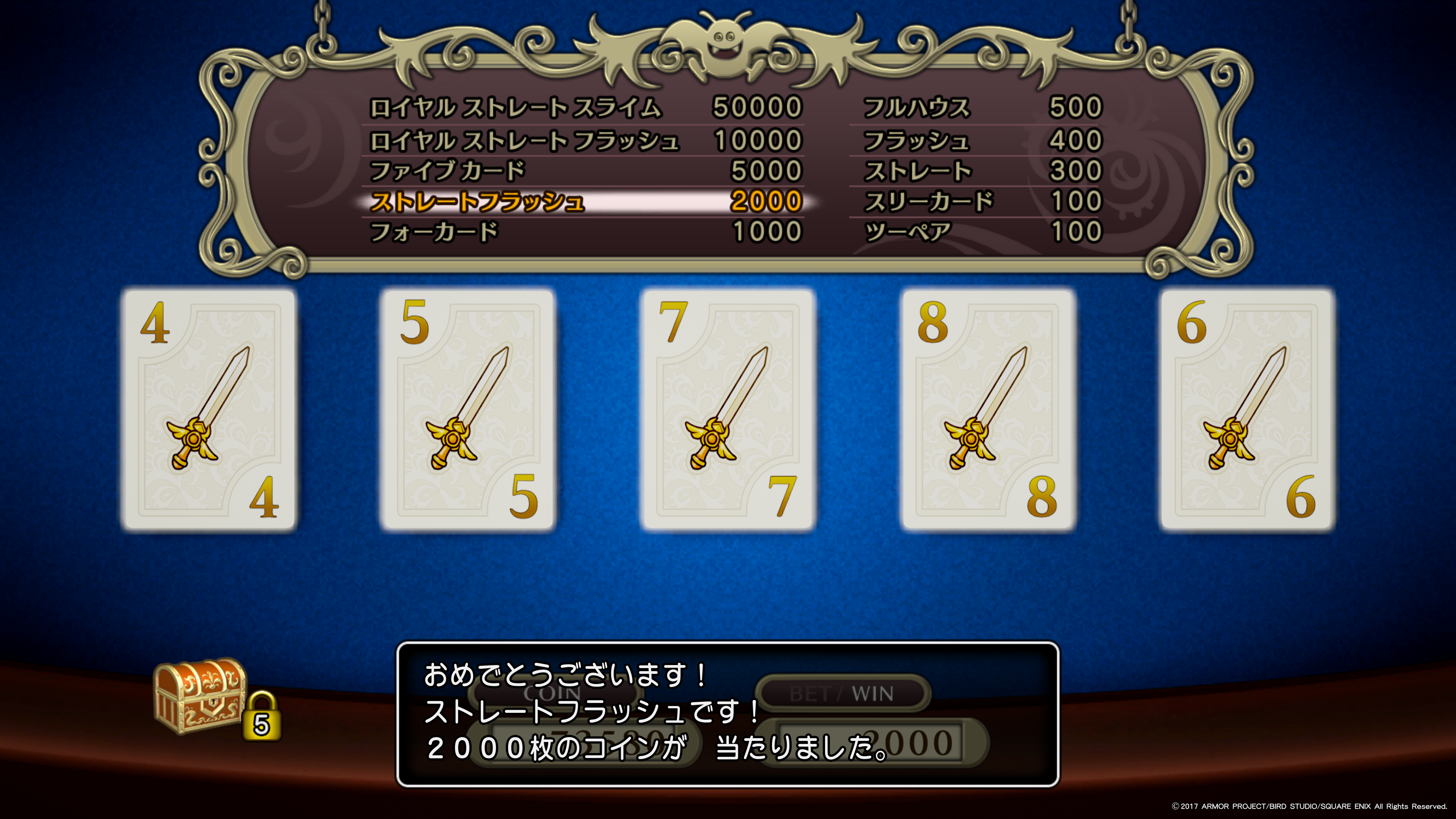 所持金が900Gくらいで、とりま800Gでコイン40枚交換して、10枚賭けのポーカー卓に座って(>_<); (4回しかできねーじゃんwww)