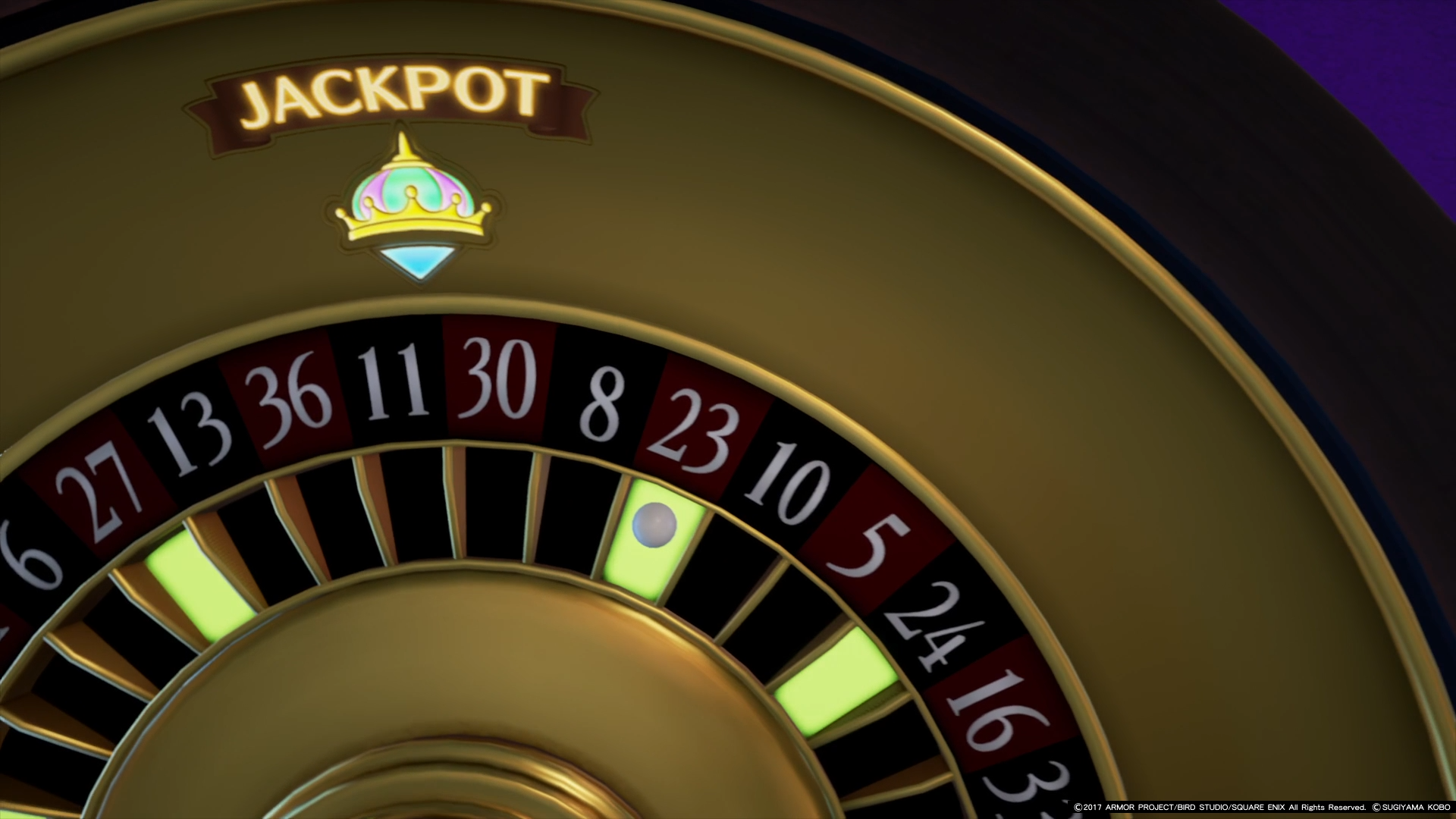 クエスト受注済みの状態で、はじめてルーレットで1点掛けを当てたら強制的にジャックポットになる仕様だと思うけども