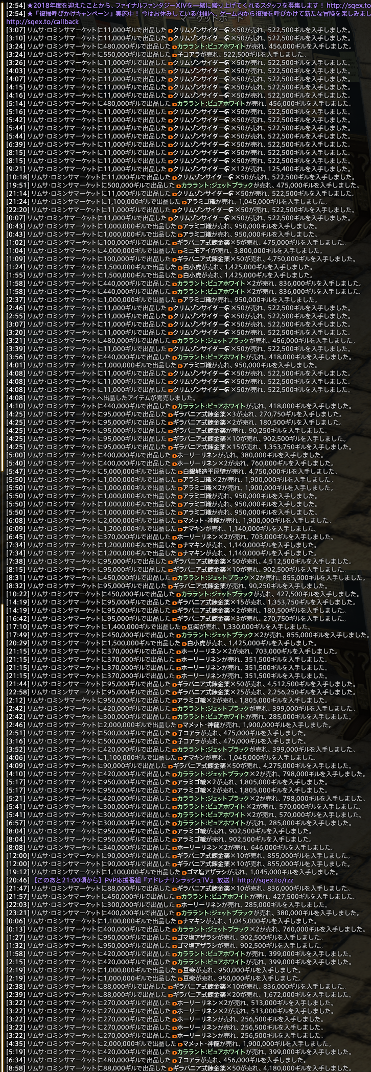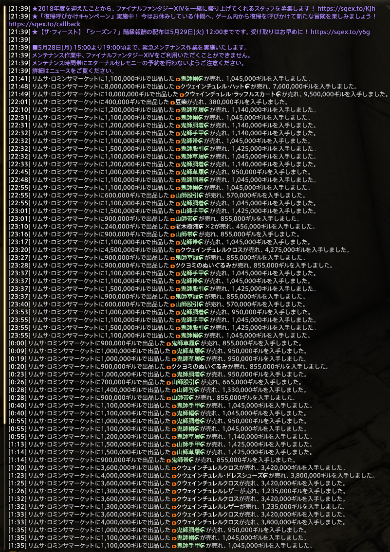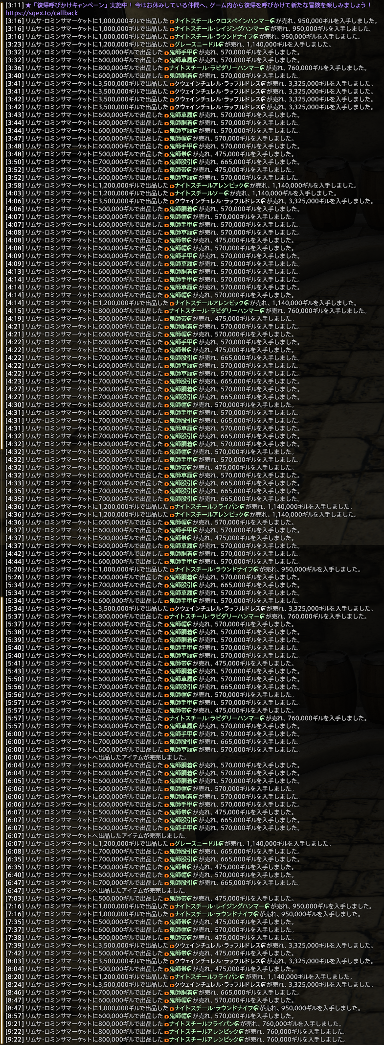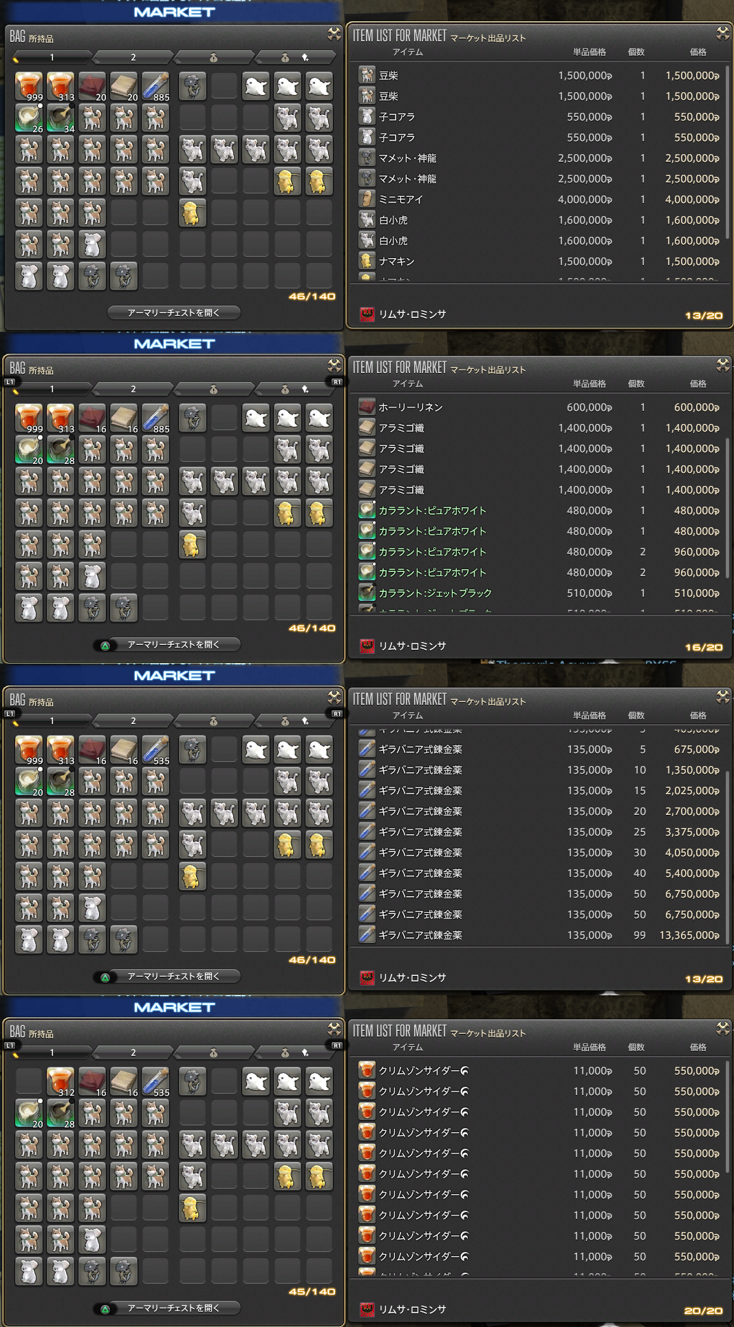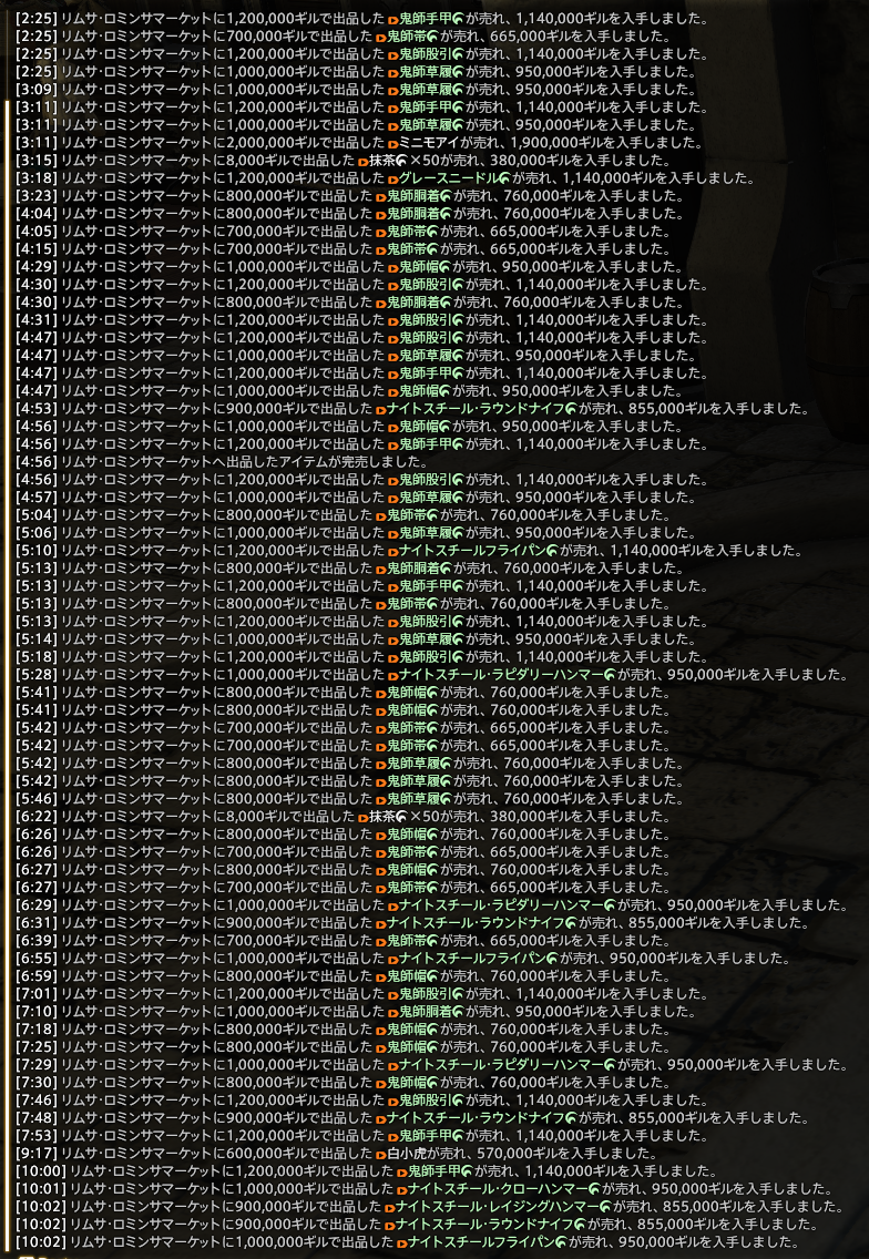 ヨソの鯖に持って行くより、自鯖で販売した方が効率いい値段になったらまた商売するわ(笑)
