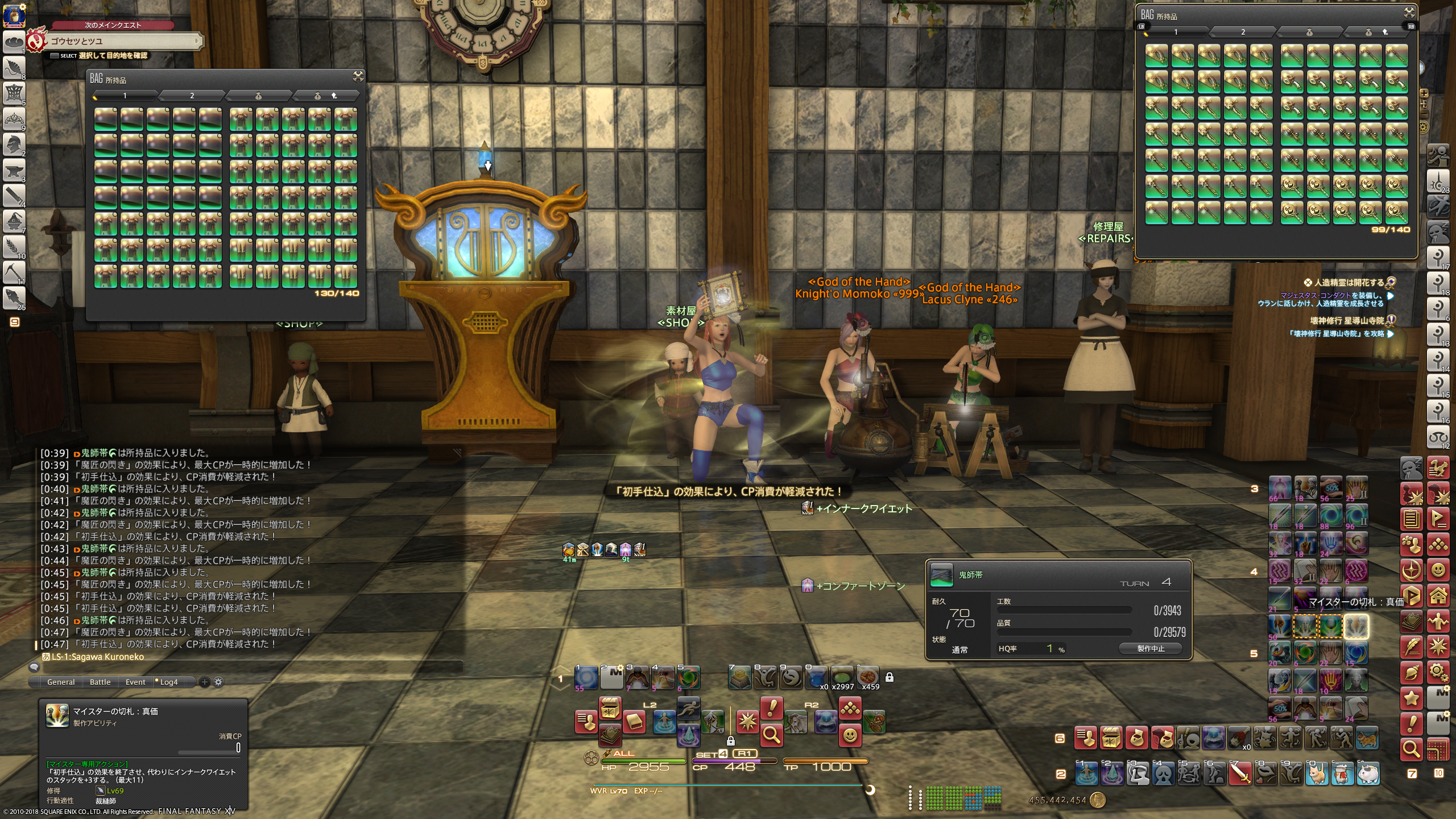 直前回の作成数は凄かったw クラフター胴脚は各80個?それ以外は40個とか持って行ったからねwww