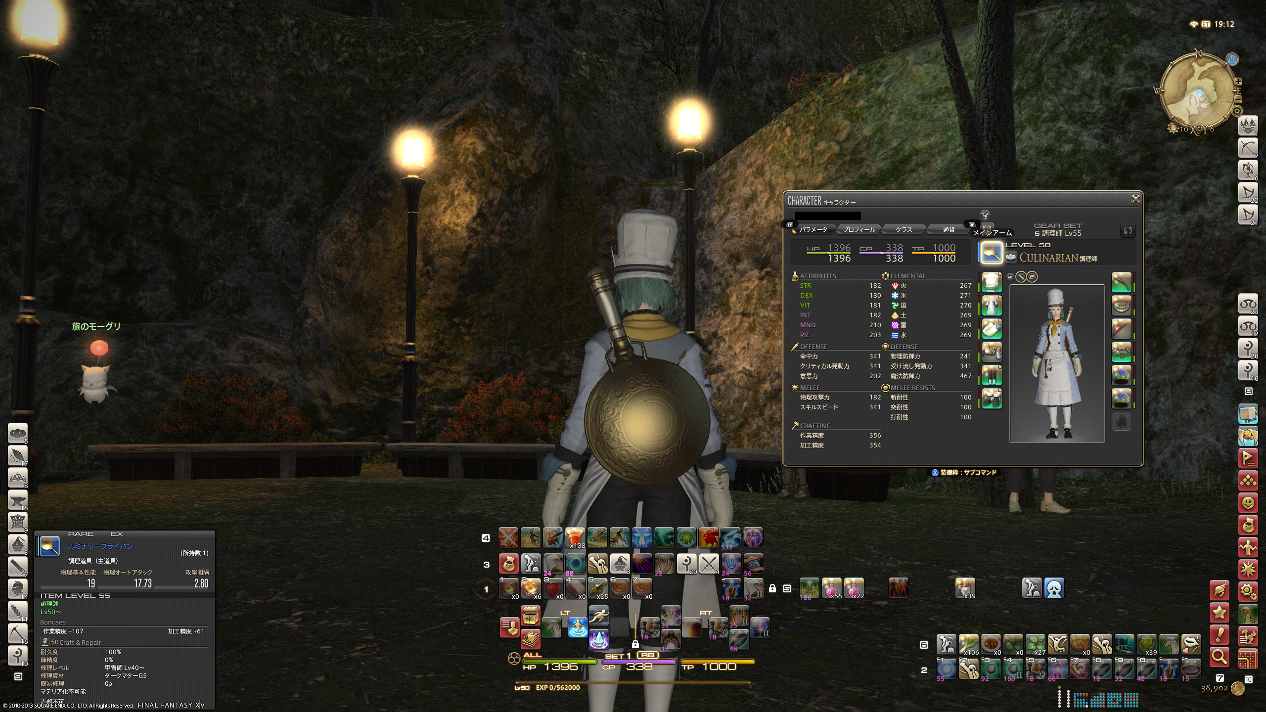 メインストーリー始めようかとも思ったけれど、やっぱ順序としては調理装備整えるのが先だろ!(>_<)w って事で、ガッチガチに装備固めてみました。 作業精度、1タリナイか………しょっぱいな!(>_<) サブウェポンで25稼げるところ、金ケチって21にしたのが痛いな。あとで作り直そう、仕方ない。 現状の最強クラフター装備、全ジョブで共通装備になったのは嬉しい。荷物がかさばってたからにゃあ(>_<)w