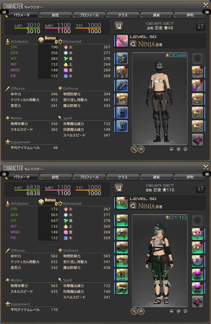 やっとこ50になった瞬間、予め用意しておいた装備で一気に全身着替えw