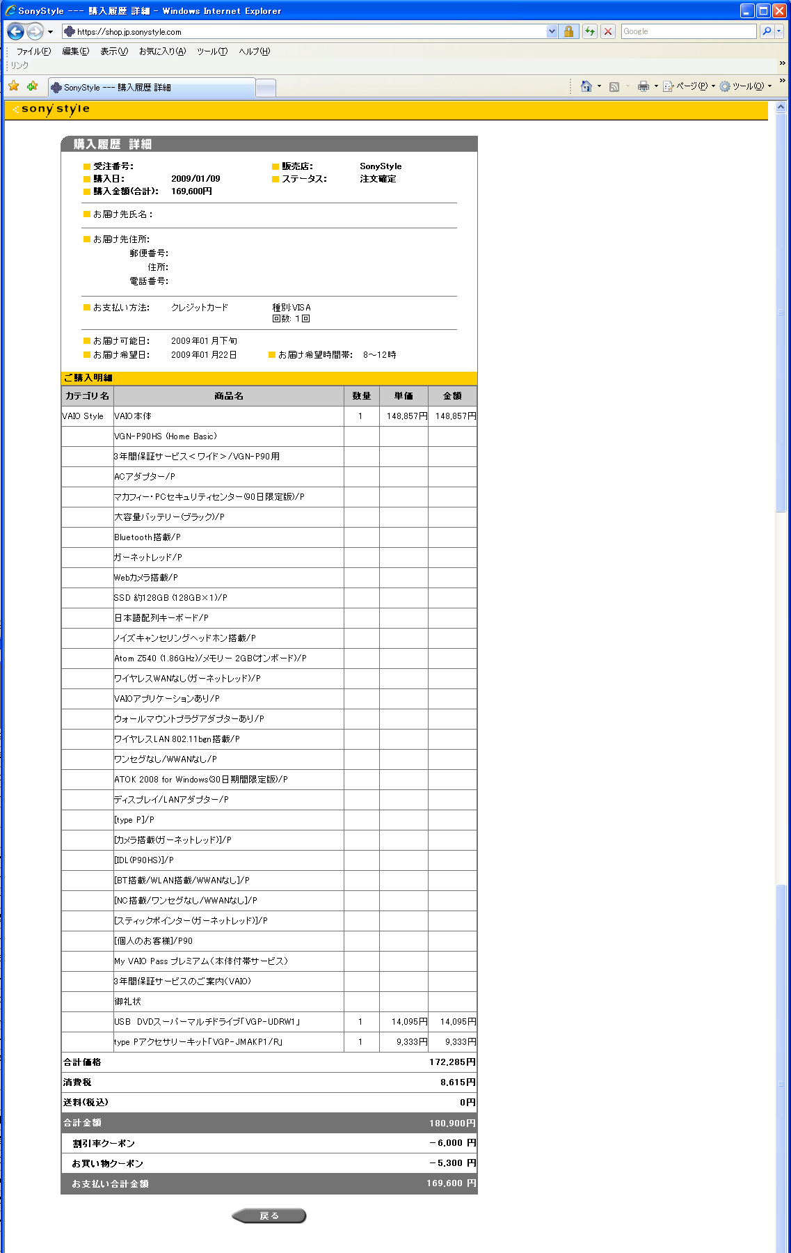 2009/01/09 12:45現在。 まー注文出来たもん勝ちw